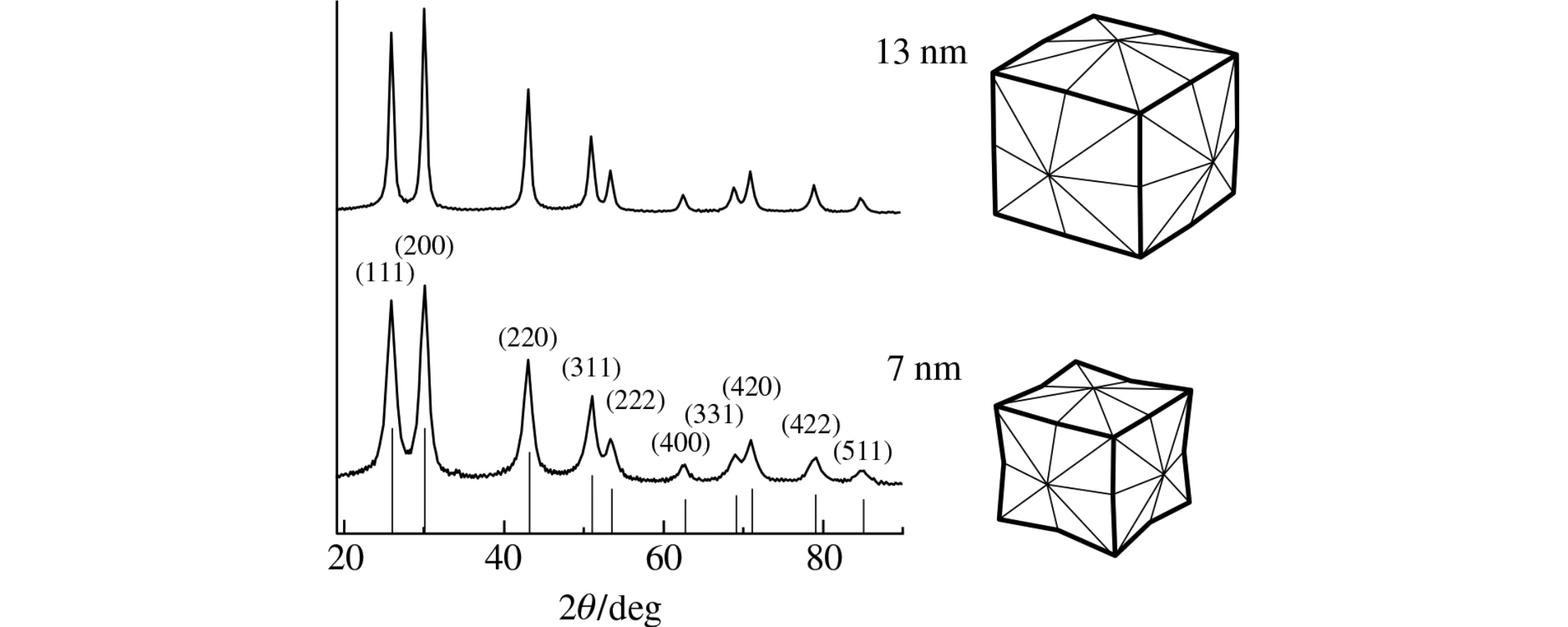 The analysis of X-ray diffraction patterns showed that the geometry of PbS nanoparticles with a structure of NaCl is a nonlinear function of particle size for PbS particles smaller than 82nm.