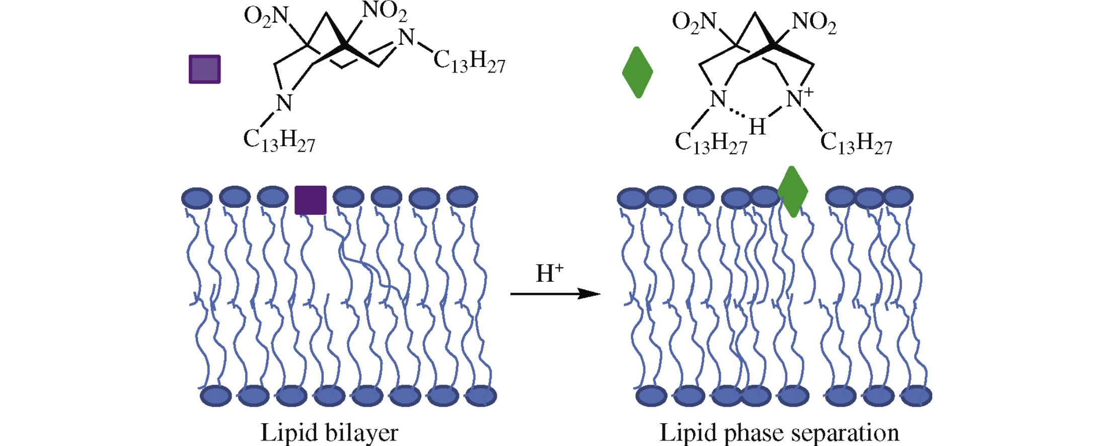 1,5-Dinitro-3,7-ditridecyl-3,7-diazabicyclo[3.3.1]nonane modulates the permeability of liposomal membranes as pH of surrounding aqueous solution decreases from 9 down to 5.