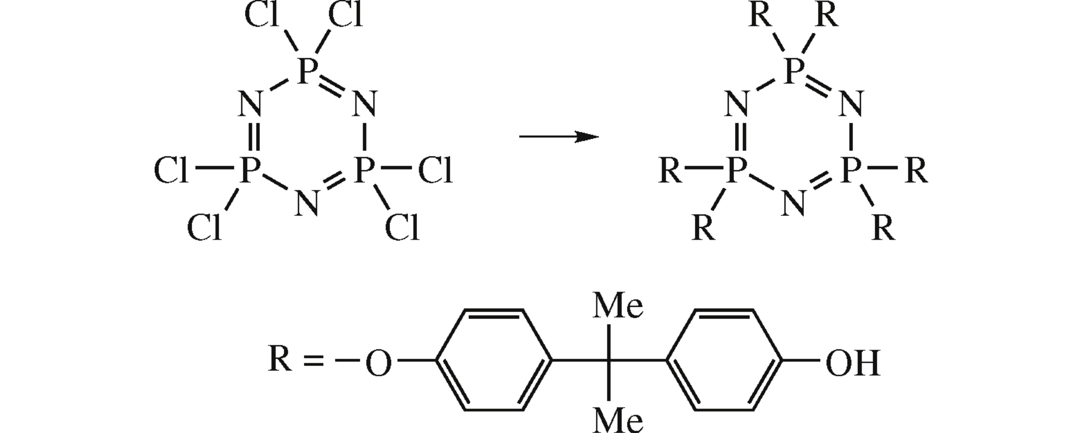 Hexasubstituted derivative of cyclotriphosphazene containing hydroxyaryloxy moieties was obtained from bisphenol A using allyl protection of phenolic groups.