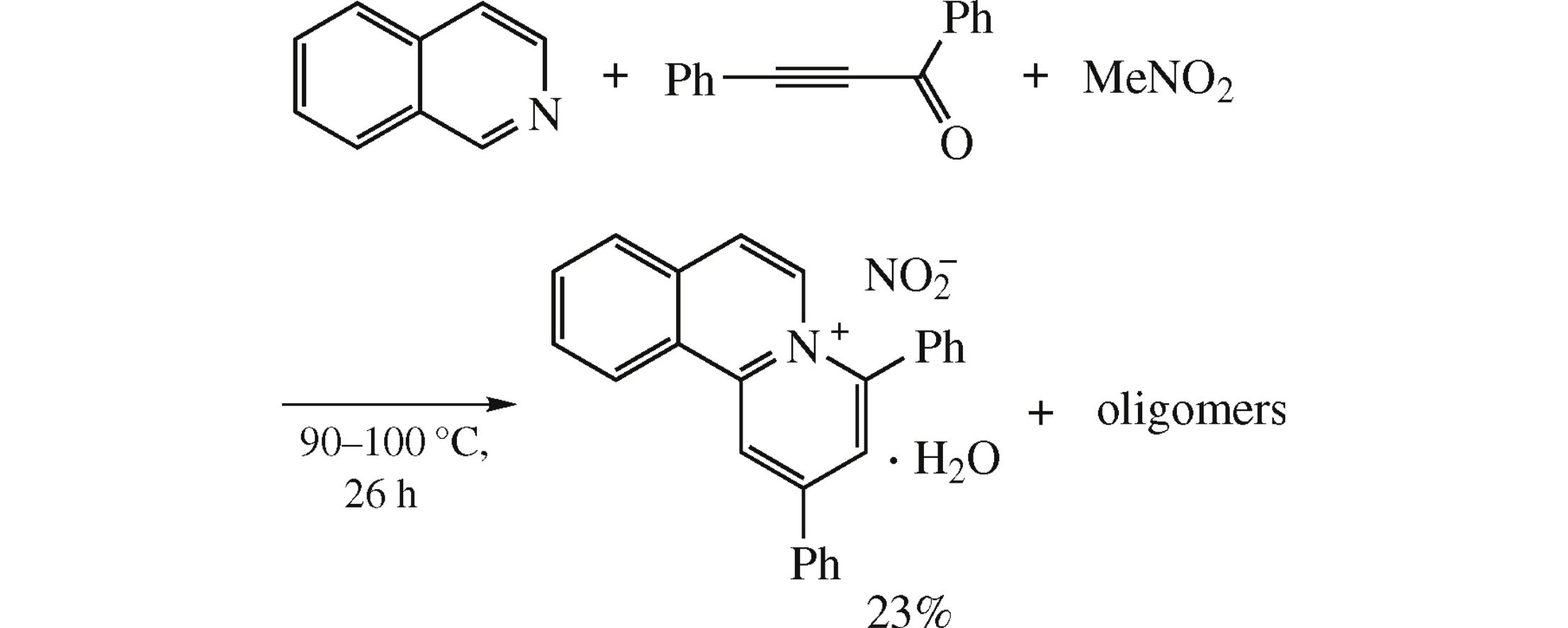 The three-component reaction between isoquinoline, 1,3-diphenylprop-2-yn-1-one and nitromethane (90–100°C, 26h) affords 2,4-diphenyl- pyrido[2,1-a]isoquinolinium nitrite in 23% yield along with oligomers.