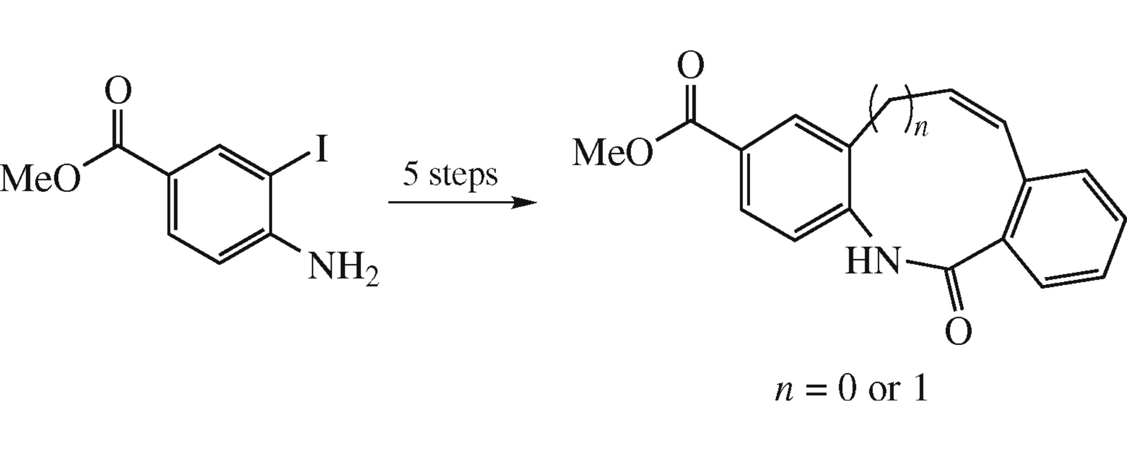 Dibenzo[b, f]azocin-6(5H)-one and dibenzo[b,g]azonin-6(13H)-one were prepared in five steps from methyl 4-amino-3-iodobenzoate.