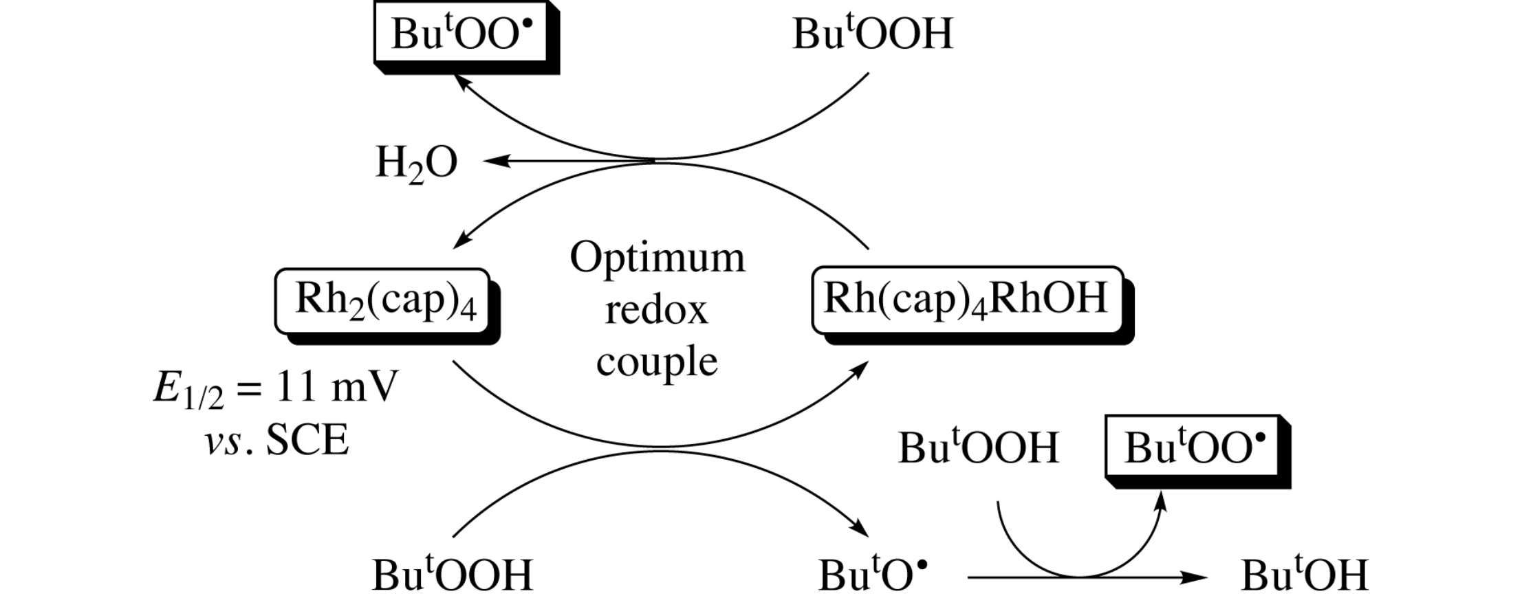 Oxidations with tert-butyl hydroperoxide (TBHP) catalyzed by dirhodium caprolactamate [Rh2(cap)4] provide mild and selective protocols for the oxidative Mannich reaction, conversion of secondary amines to imines, dearomatization of 4-substituted phenols, and oxyfunctionalization of allylic, benzylic, and propargylic positions. The dirhodium catalyst in combination with TBHP is a convenient platform for mechanistic investigations, and their uses point to a variety of directions for the future evolution of the field.