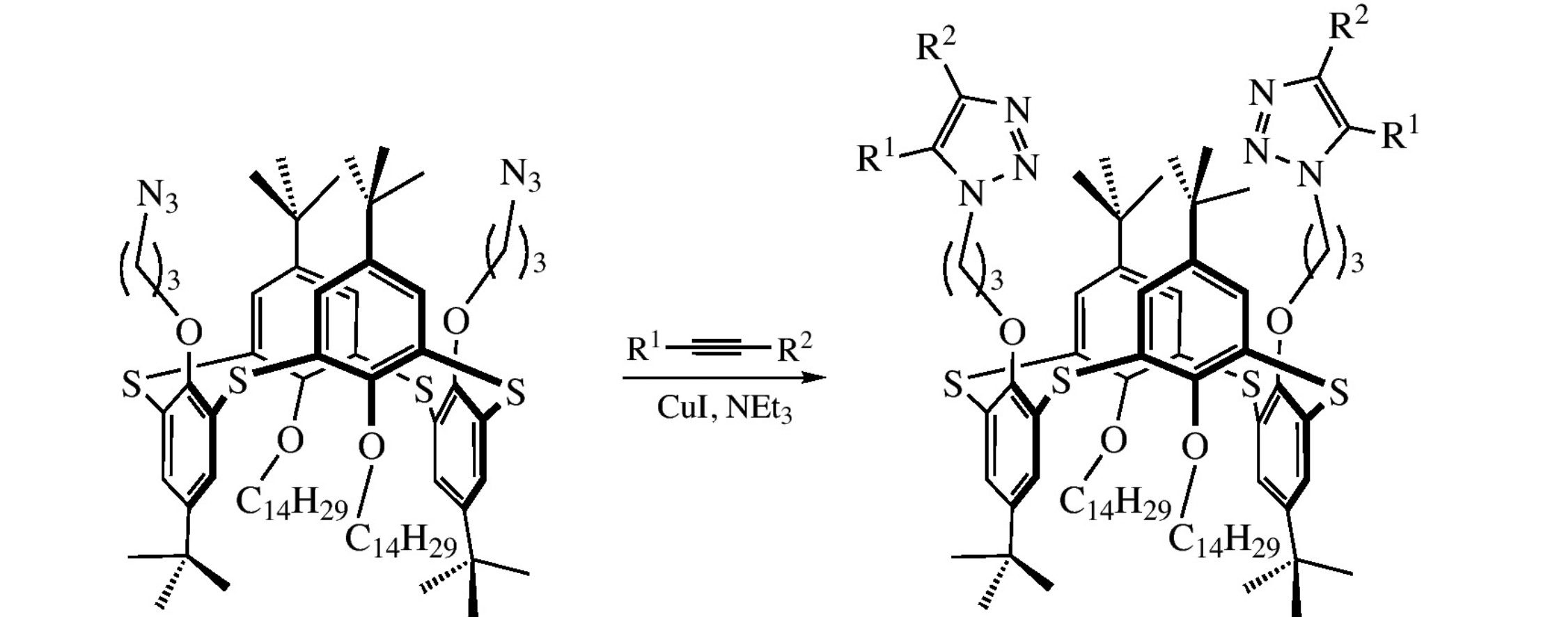 Azidoalkyl-substituted 1,3-alternate p-tert-butylthiacalix[4]arenes were subjected to click reactions with alkynes affording thus novel amphiphilic derivatives of this series.