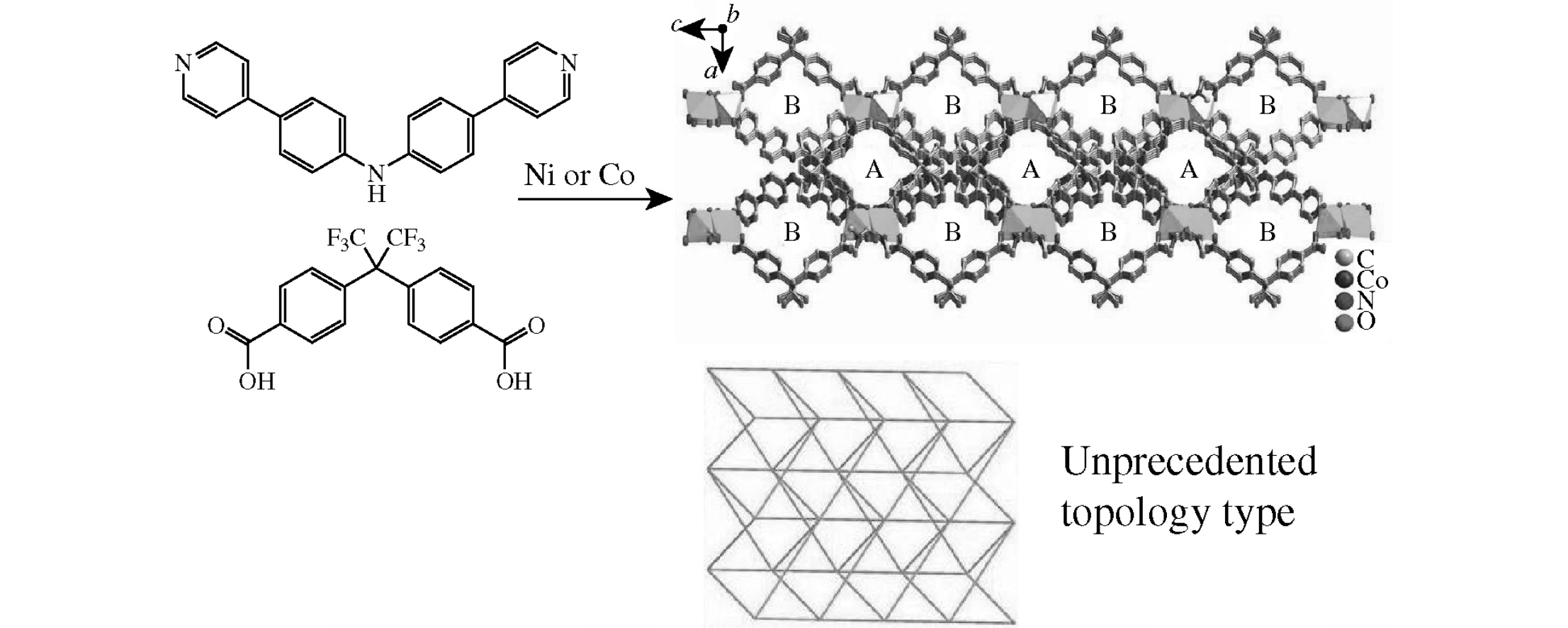 The new complexes {[Co2(BPPA)(hfipbb)2(H2O)(DMF)2](H2O)4}n and {[Ni2(BPPA)(hfipbb)2(H2O)(DMF)2](H2O)4}n have been synthesized under solvothermal conditions. These isostructural complexes exhibit 2D bilayer networks with unprecedented {411.64} topology.