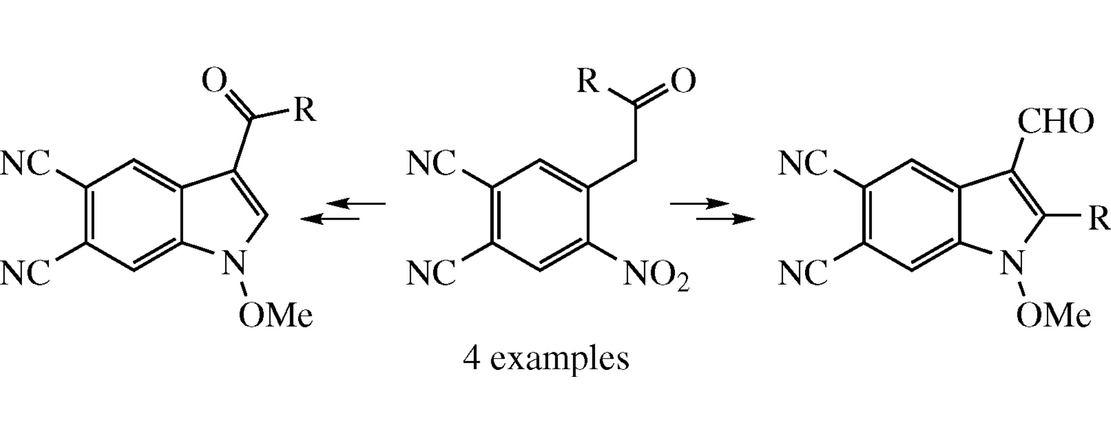 The Vilsmeier–Haack formylation of 4-(2-aryl-2-oxoethyl)-5-nitrophthalonitriles followed by reduction affords 3-acyl-1-hydroxy- 1H-indole-5,6-dicarbonitriles.