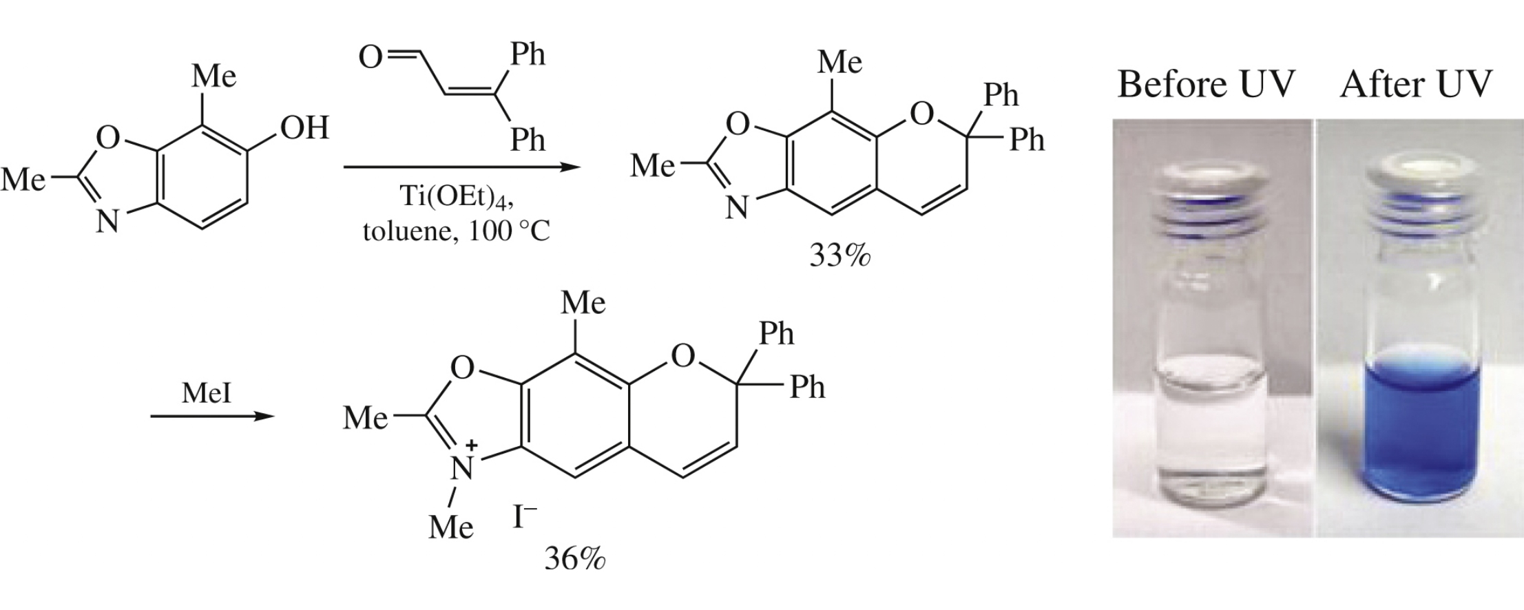 Quaternization of N-heterocycle-fused chromenes with iodomethane and of triethylamine with 3-bromopropyl-substituted spiro- naphthoxazine affords new ammonium-equipped photochromes.