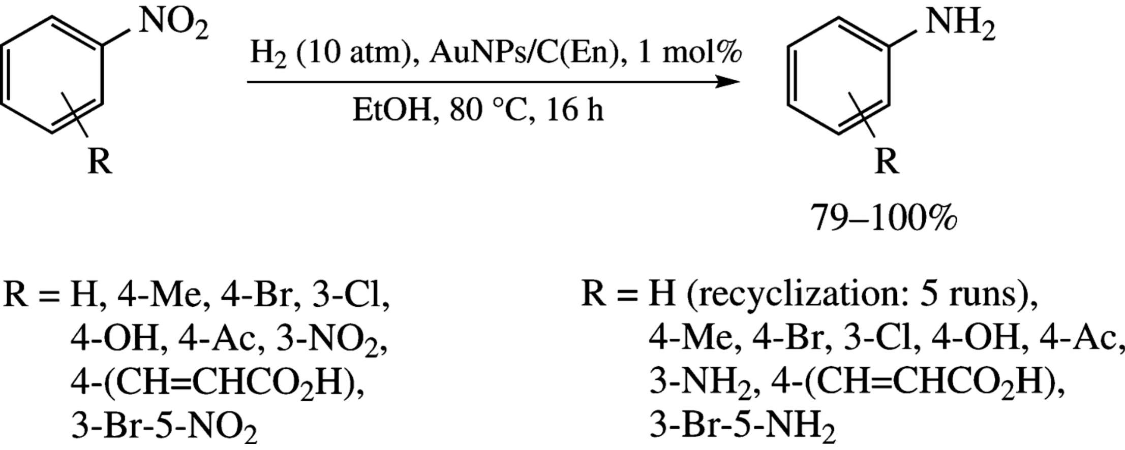 A catalyst based on activated carbon with deposited gold nanoparticles and impregnated with ethylenediamine for selective hydrogenation of nitroarenes has been suggested.