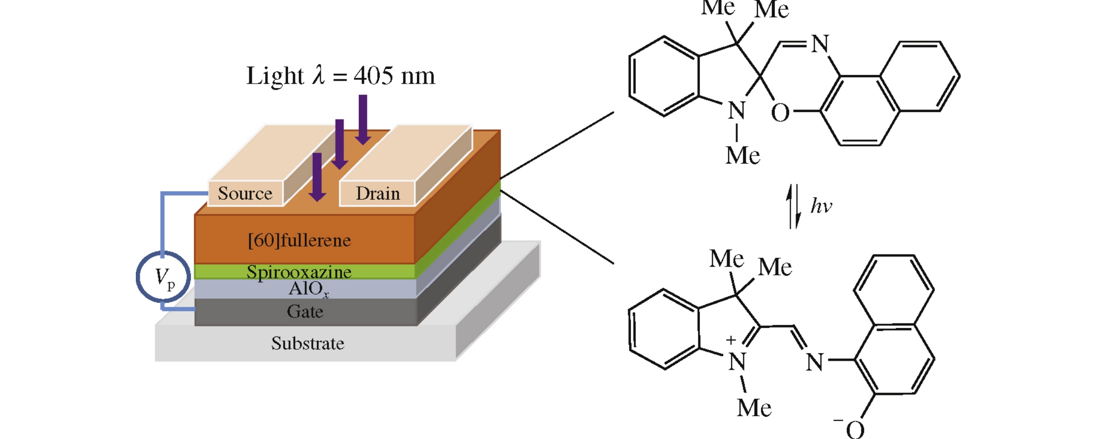 The design of high-speed optical memory elements based on organic field-effect transistors comprising [60]fullerene as an n-type semiconductor and 1,3-dihydro-1,3,3-trimethylspiro(2H-indole-2,3’-[3H]naphth[2,1-b][1,4]oxazine) as a light-sensitive component placed at the interface with an aluminum oxide gate dielectric has been developed. The memory elements exhibit a switching coefficient of ∼104 and a minimal programming time of 0.5–1.5ms.