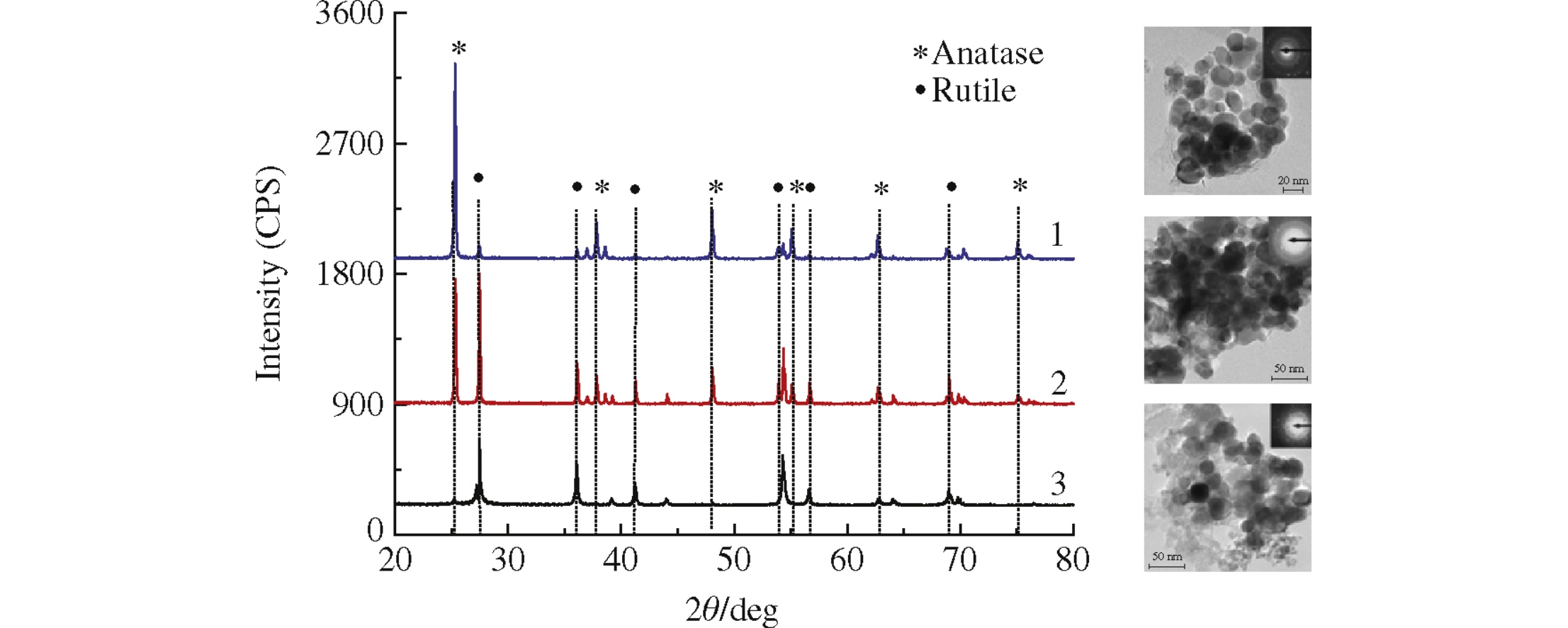 A gas phase reaction was proposed for the production of high dispersity polymorphic titanium oxide (TiO2) nanoparticles in a closed detonation device. The phase structure, morphology and composition of TiO2 were characterized by XRD, TEM and EDX analysis.
