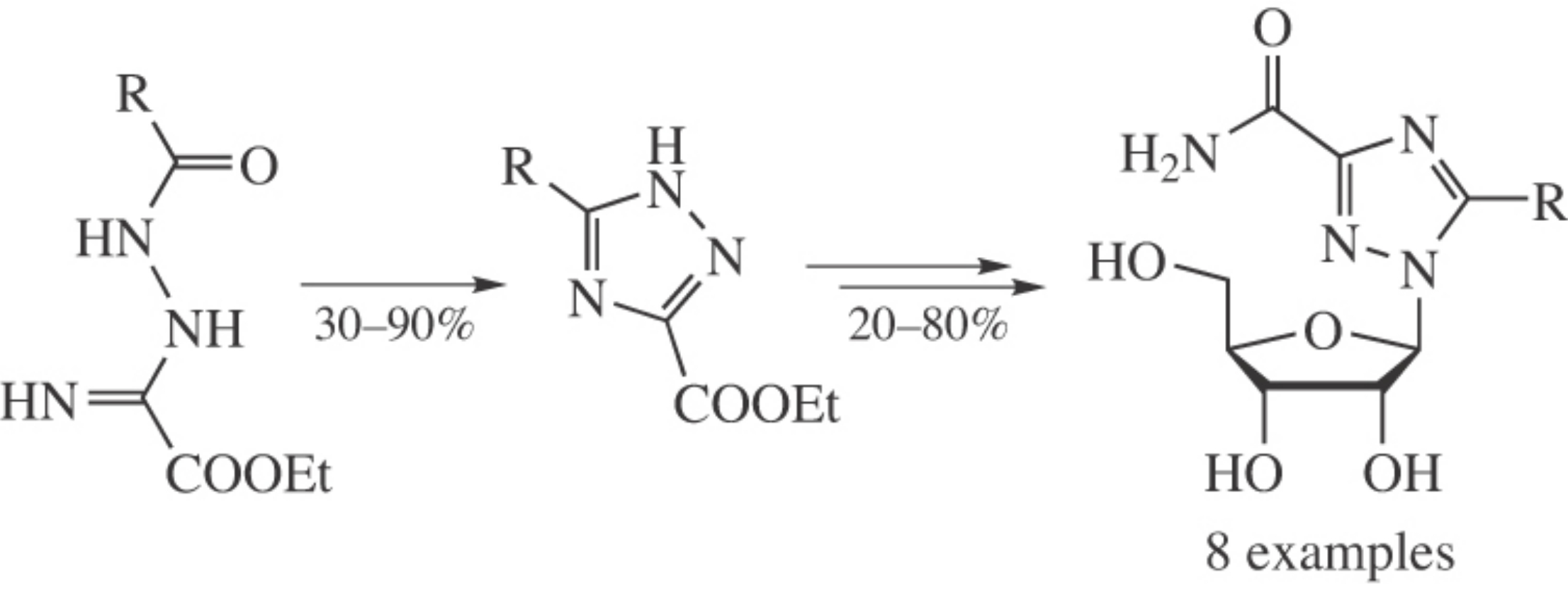 Novel 5-alkyl(aryl)-substituted 1-β-D-ribofuranosyl-1,2,4-triazole-3-carboxamides were prepared in three steps. Their antiviral activity was evaluated.