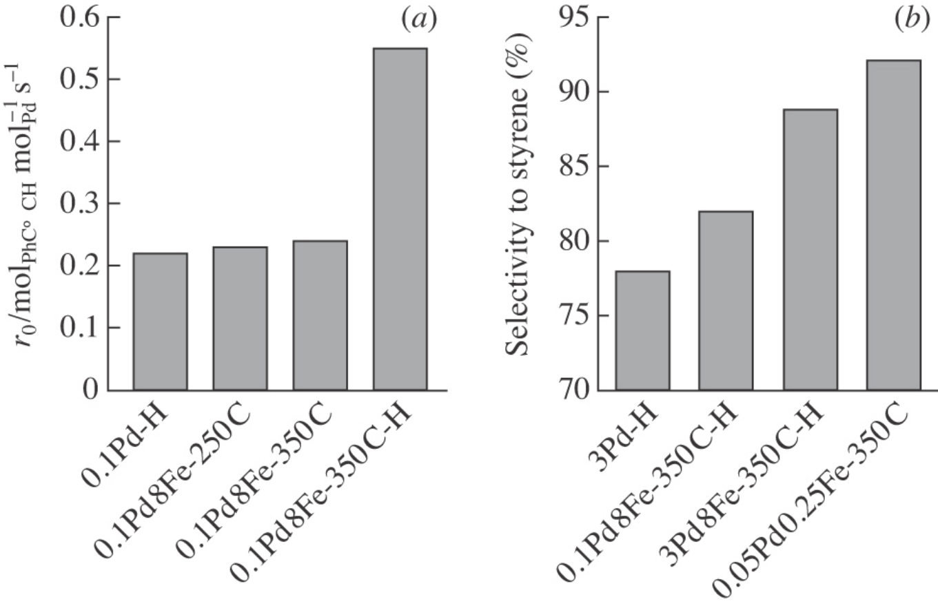 Bimetallic Pd–Fe/SiO2 catalysts were synthesized and studied in the liquid-phase hydrogenation of phenylacetylene to styrene. The activity (at 0.05–0.1 wt% Pd) and selectivity of the bimetallic system were superior to those of monometallic Pd/SiO2 catalyst.