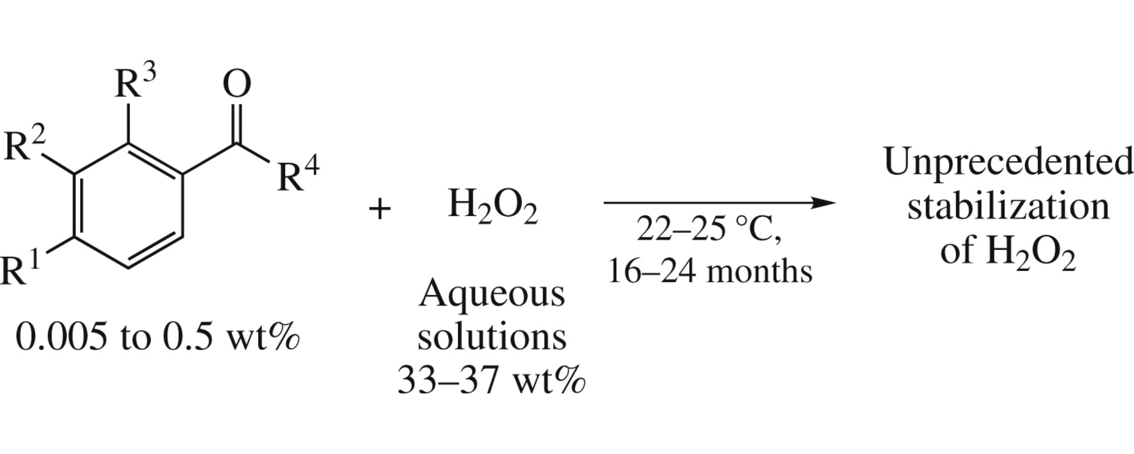 Aryl alkyl ketones with substituents in the aromatic ring taken in an amount from 0.005 to 0.5% efficiently stabilize hydrogen peroxide in an aqueous solution during storage at 22–25°C for 16–24 months.