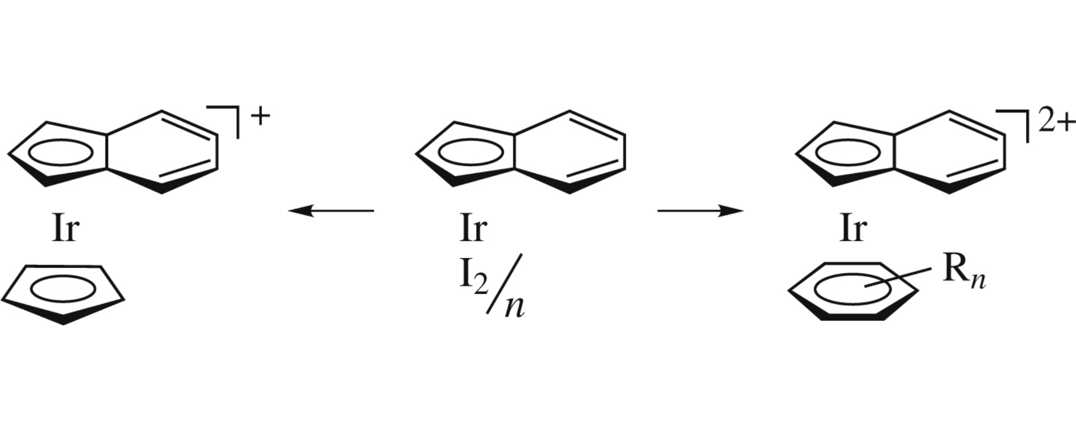 The reactions of [(η5-indenyl)IrI2]η with CpTl or arenes in the presence of AgBF4 afford [(η5-indenyl)IrCp]+ or [(η5-indenyl)Ir(arene)]2+ cations (arene = benzene, mesitylene, durene or hexamethylbenzene); the structures of (η5-indenyl)-Ir(C2H4)2 and [(η5-indenyl)IrCp]PF6 were characterized by X-ray diffraction analysis.