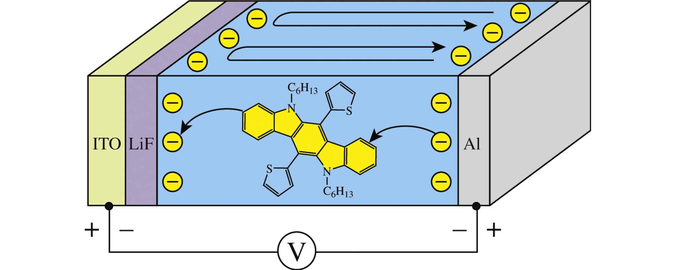 Study of electron and hole mobility for 5,11-dihexyl-6,12-di(2-thienyl)indolo[3,2-b]carbazoles has shown that their heteroaromatic cores act as electron transport centers.