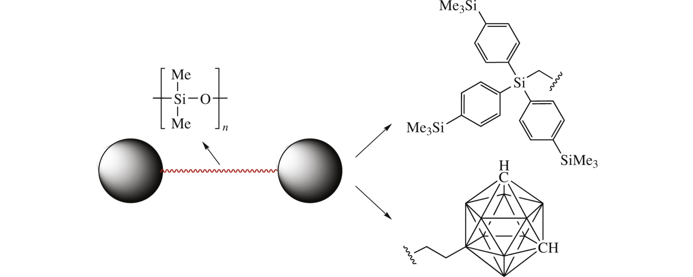 New polydimethylsiloxanes containing bulk terminal groups such as carboranyl and tris(4-trimethylsilylphenyl)silyl moieties have been synthesized and their thermophysical and rheological properties have been examined.