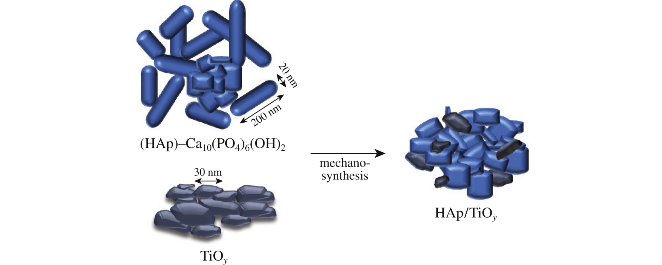 The doping of hydroxyapatite (HAp) with 10 or 20 wt% titanium monoxide (TiOy), substoichiometric TiO0.92 or super-stoichiometric TiO1.23, leads to a considerable reduction in the initial temperature of composite compaction and to an increase in the microhardness and density of the composite material, as compared to plain HAp.