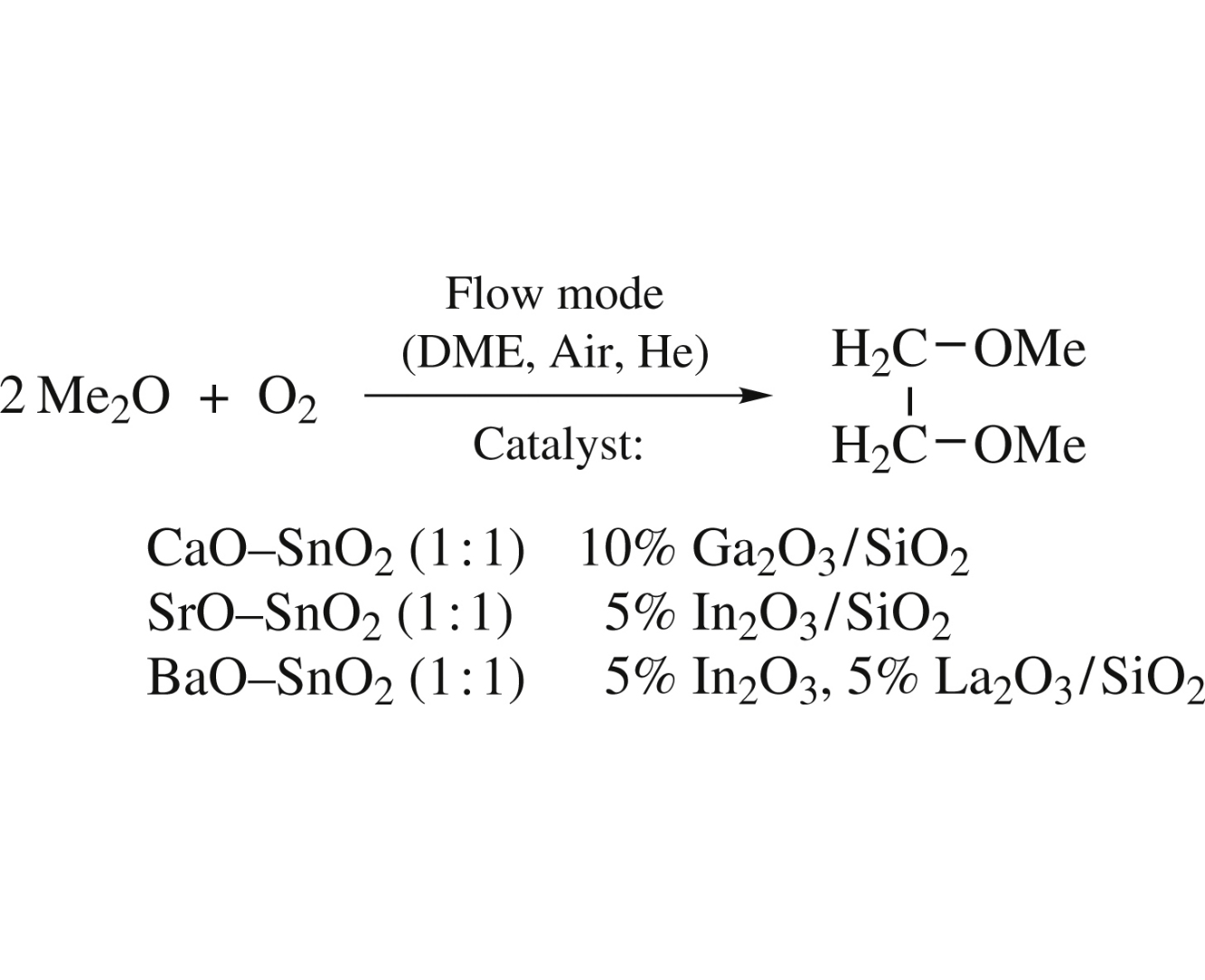 Catalysts based on silica-supported Ga2O3, In2O3, La2O3 possess higher activity in oxidative dehydrogenation of dimethyl ether to dimethoxyethane than co-precipitated CaO–SnO2, SrO–SnO2, BaO–SnO2 catalysts.