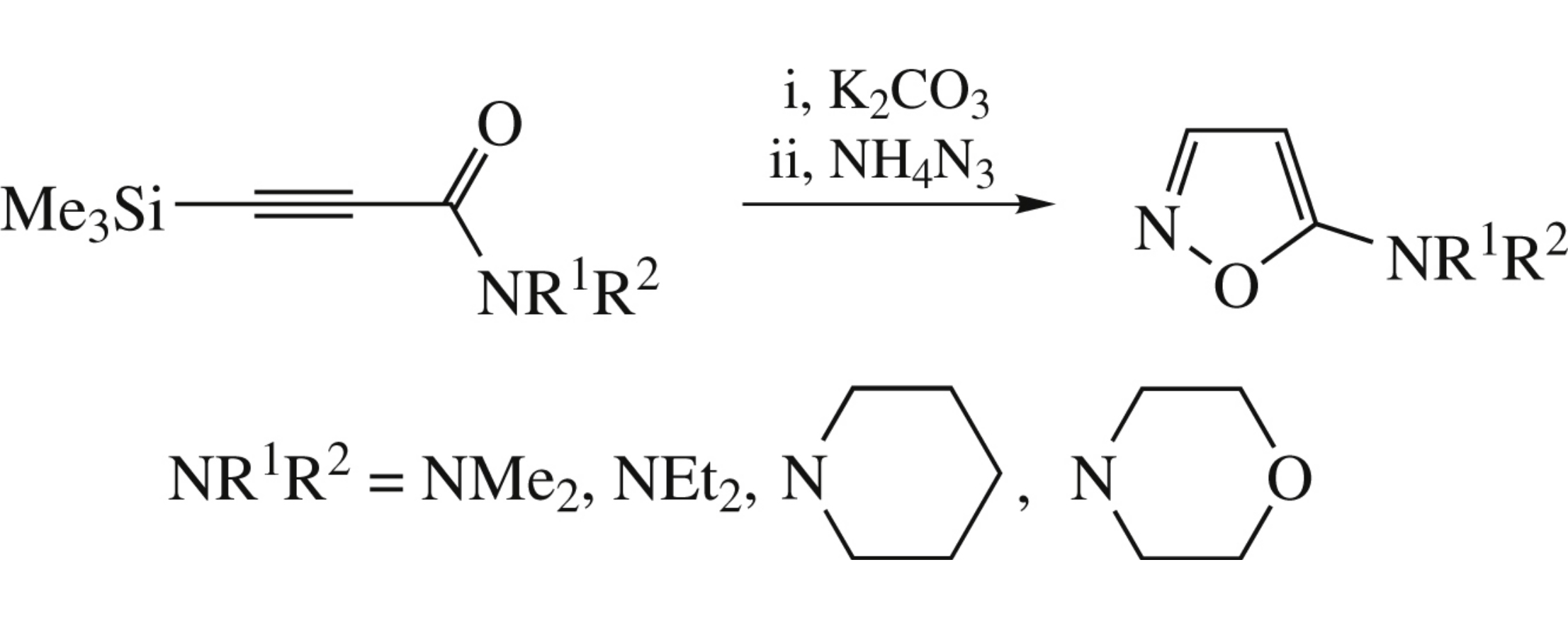 Reaction between N,N-disubstituted 3-trimethylsilylprop-2-ynamides and ammonium azide under mild conditions affords hitherto unknown 5-aminoisoxazole derivatives in good yields.