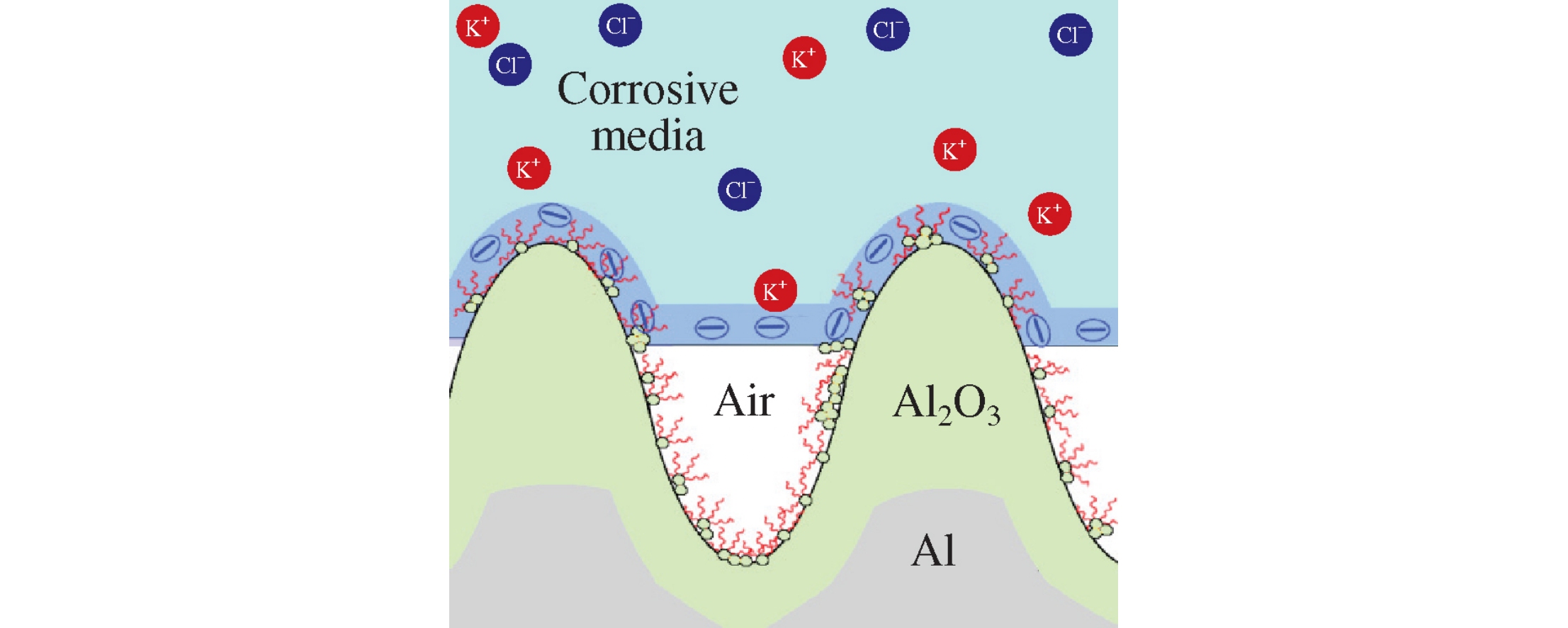 New mechanisms of the anticorrosion action of superhydrophobic coatings (SHCs), additional to electrolyte repellency, namely, the suppression of adsorption of aggressive ions, the barrier effect of a modified surface layer, and the specific charging of a hydrophobic layer in electrolytes, are considered and illustrated by the electrochemical behavior of an SHC on aluminum alloy in KCl solutions.