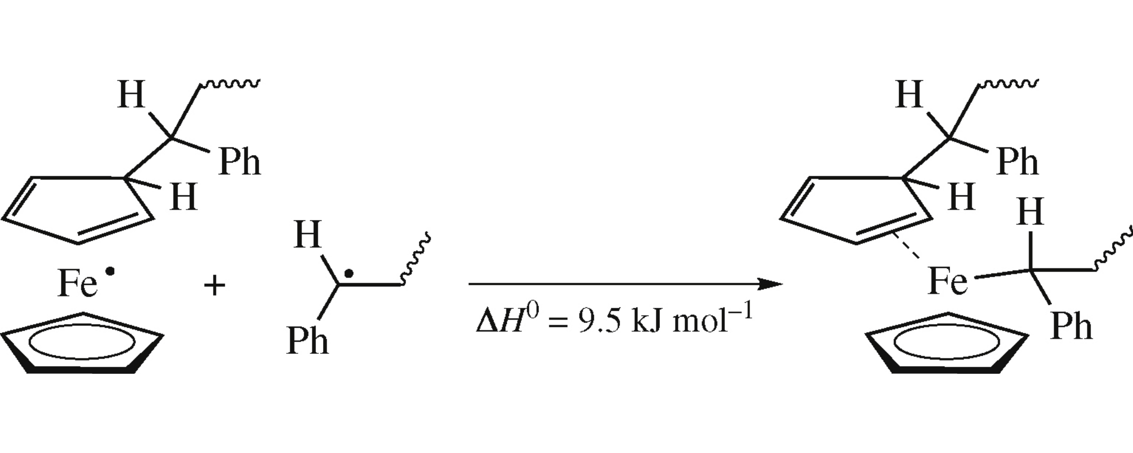 The transformations occurring in the course of radical-initiated polymerization of styrene in the presence of ferrocene have been analyzed using TPSSTPSS/TZVP method of the density functional theory.