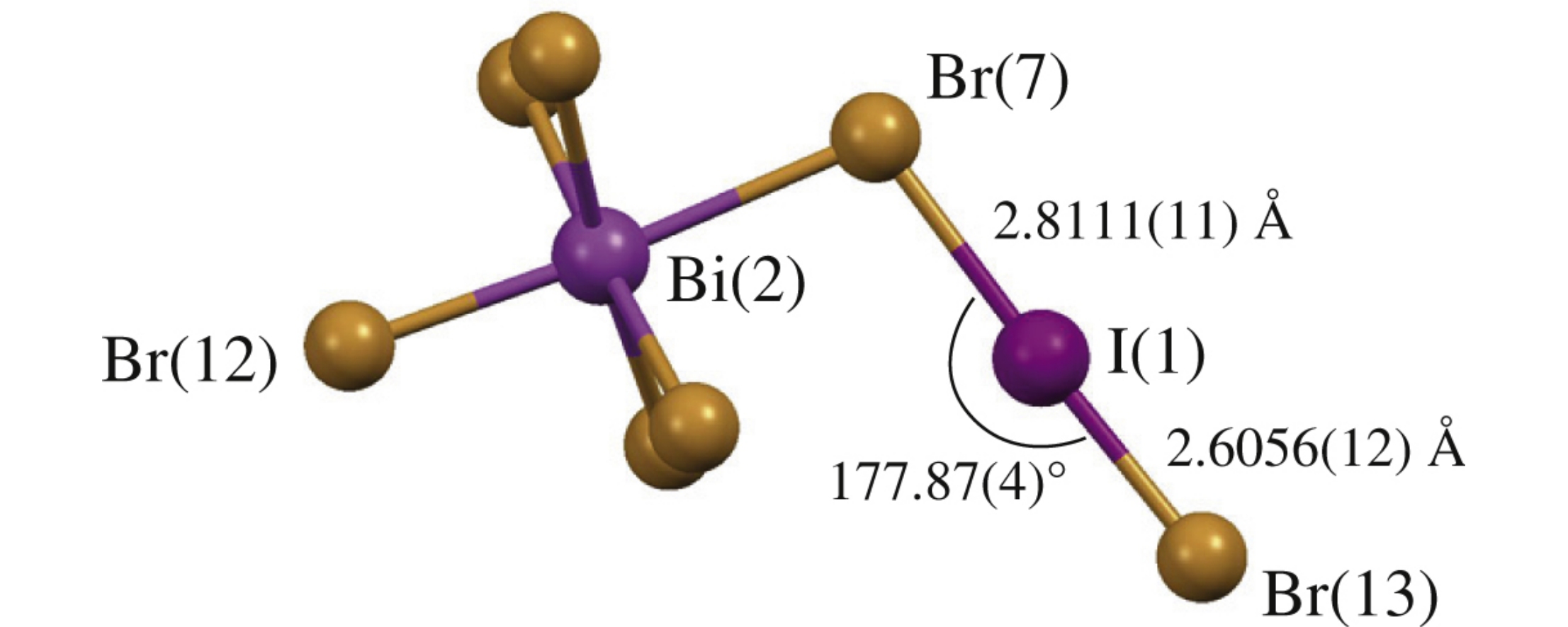 A new organic-inorganic hybrid material containing bromobismuthate anions and bis(1-pyridino)hexane cations was synthesized and characterized. The reaction between (C16H22N2)2Bi2Br10 and HBr in the presence of HI vapor afforded (C16H22N2)3(BiBr6)2 as the main product and (C16H22N2)3(BiBr6)(BiBr7I) as a by-product containing the BrIBr– anion coordinated by bismuth.