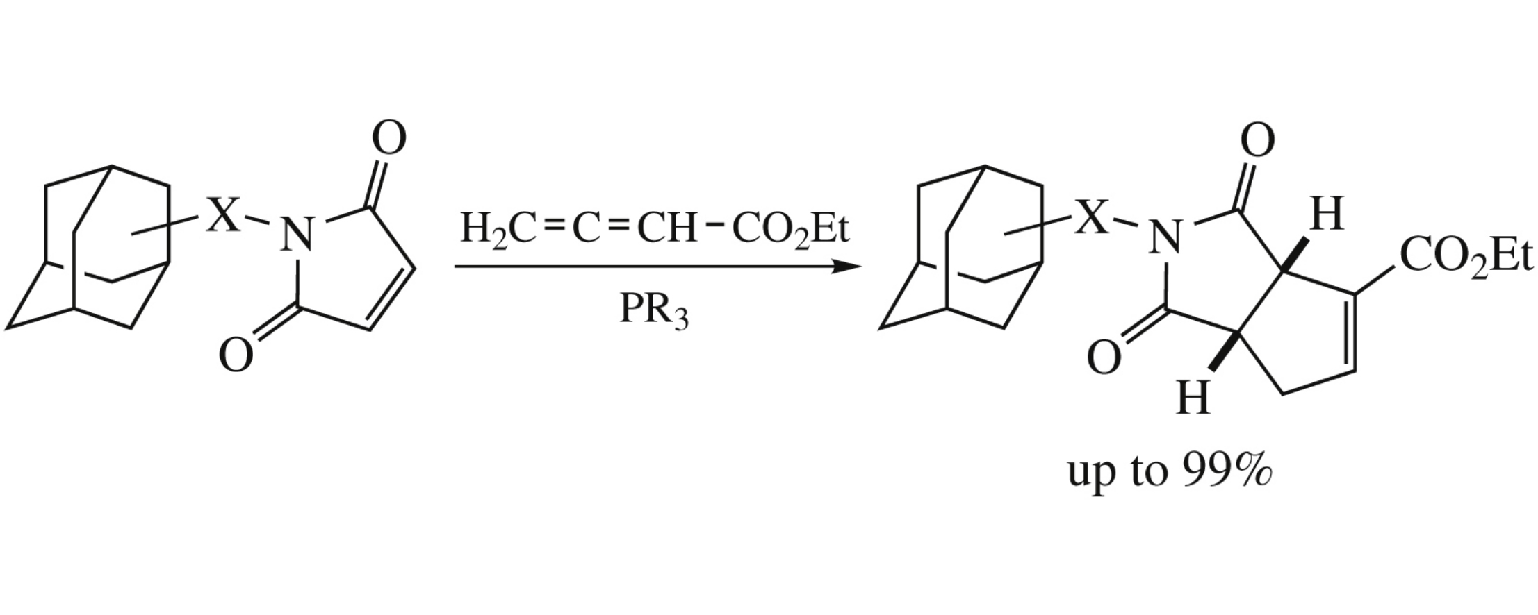 Triphenylphosphine-catalyzed [3 + 2] cycloaddition between ethyl buta-2,3-dienoate and adamantane-containing N-substituted maleimides affords substituted bicyclic succinimides in excellent yields.