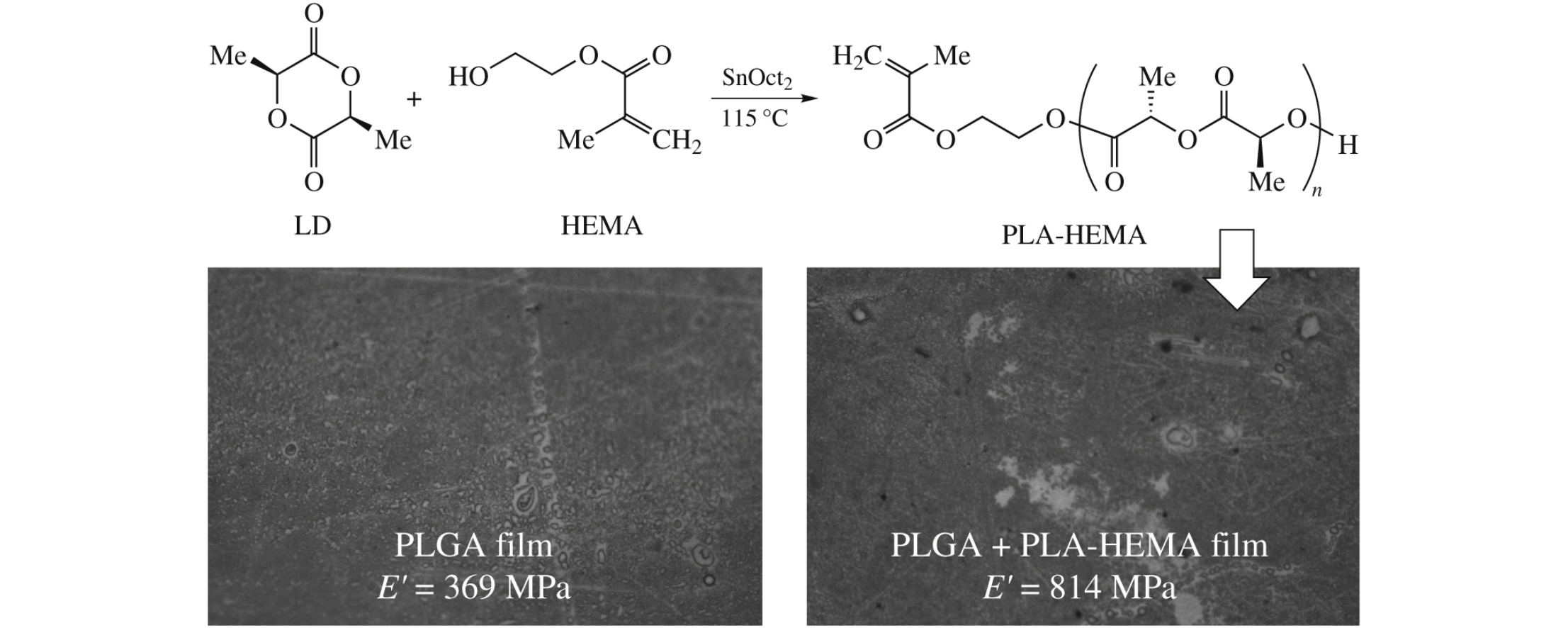 Poly(lactic acid) with terminal methacrylate groups was synthesized in one pot using 2-hydroxyethyl methacrylate as initiator, whose content affected the polymer molecular weight. The impact of the obtained modified polymer crosslinking on the mechanical properties of PLA-based films was established.