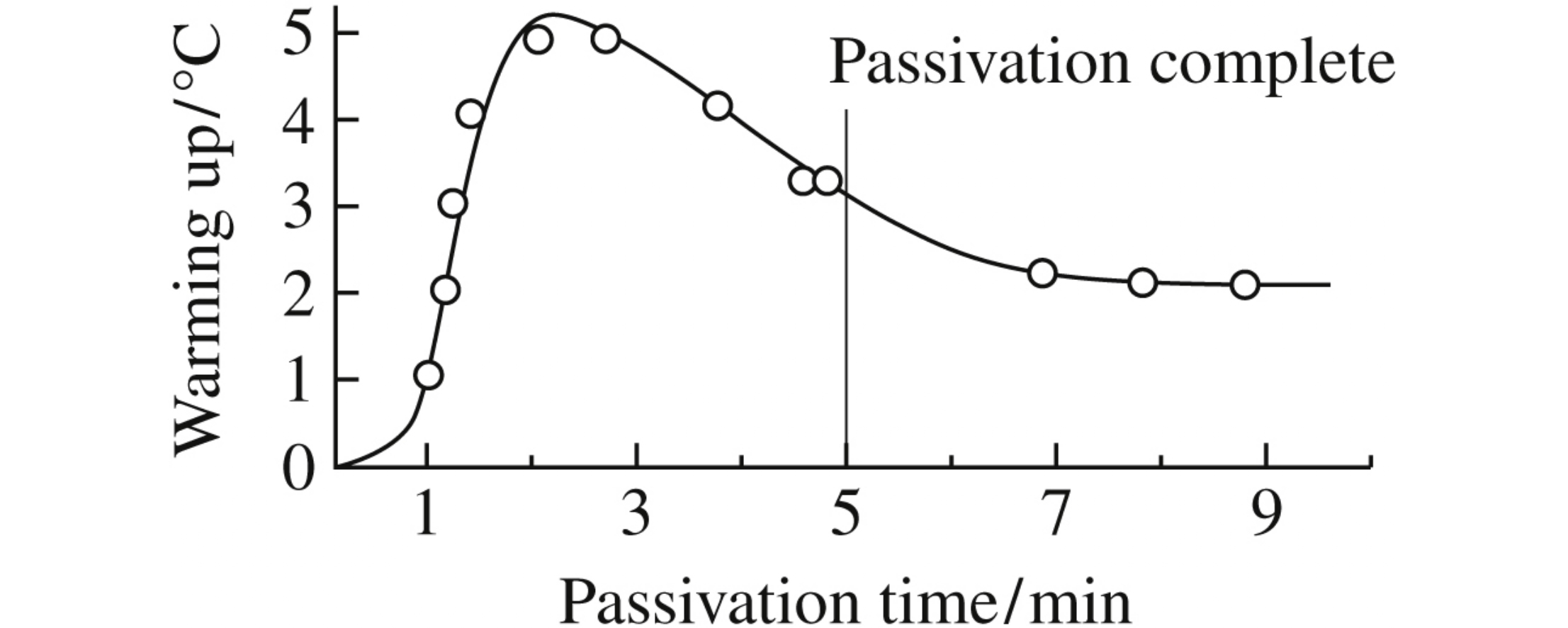 Nanoscaled pyrophoric nickel powders were synthesized by the decomposition of nickel formate layers 1–3 mm thick in a flow of hydrogen at 209°C and then passivated in a flow of 0.6% oxygen + Ar for 2–10 min. The time of completion of passivation coincides with the time of beginning of cooling down of the sample during passivation.