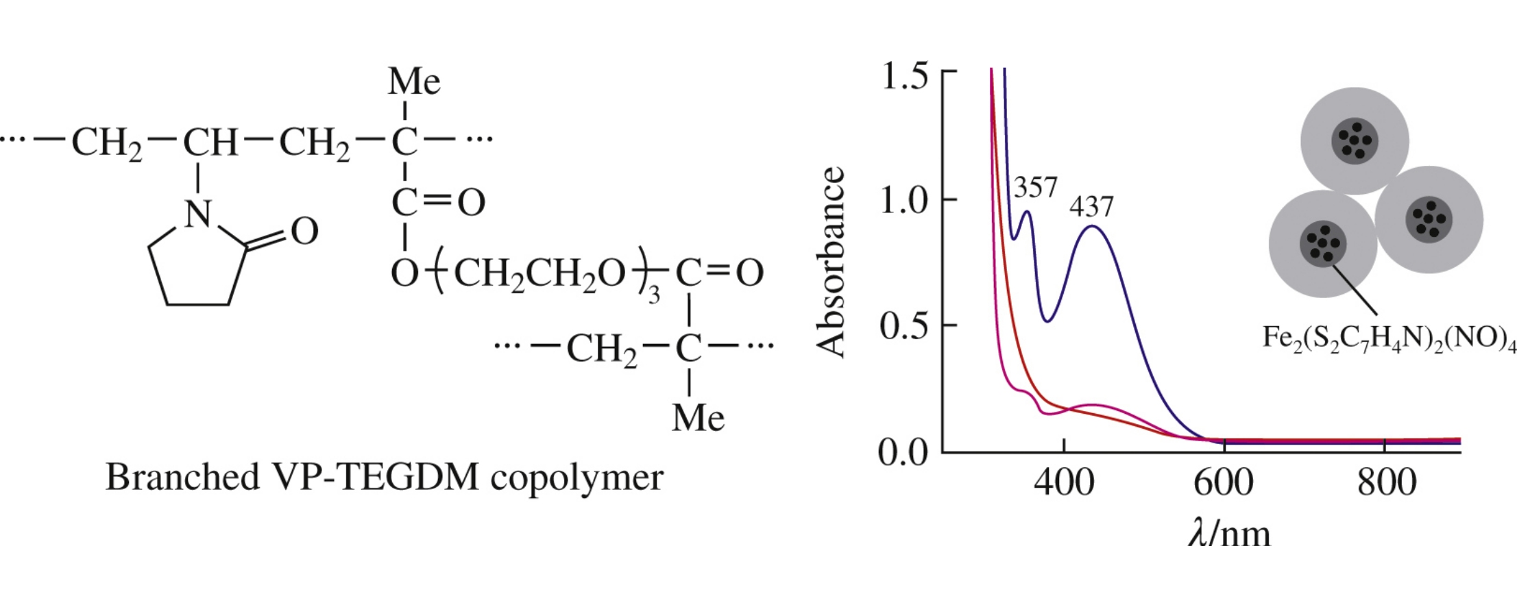 The polymer nanoparticles based on an amphiphilic copolymer of N-vinylpyrrolidone with triethylene glycol dimethacrylate downloaded by antitumor agents (binuclear nitrosyl complexes of iron) were produced.