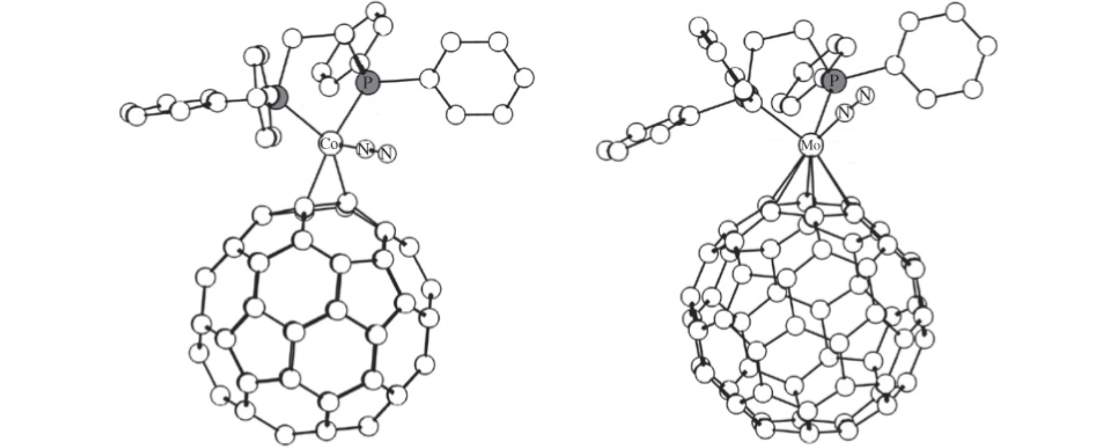 Quantum chemical modeling demonstrates the stability of Co0 and Mo0 metal complexes with N2 and C60 ligands in the coordination sphere. These complexes may be used as convenient synthons for the synthesis of polynuclear metal complexes with bridging fullerene ligands.