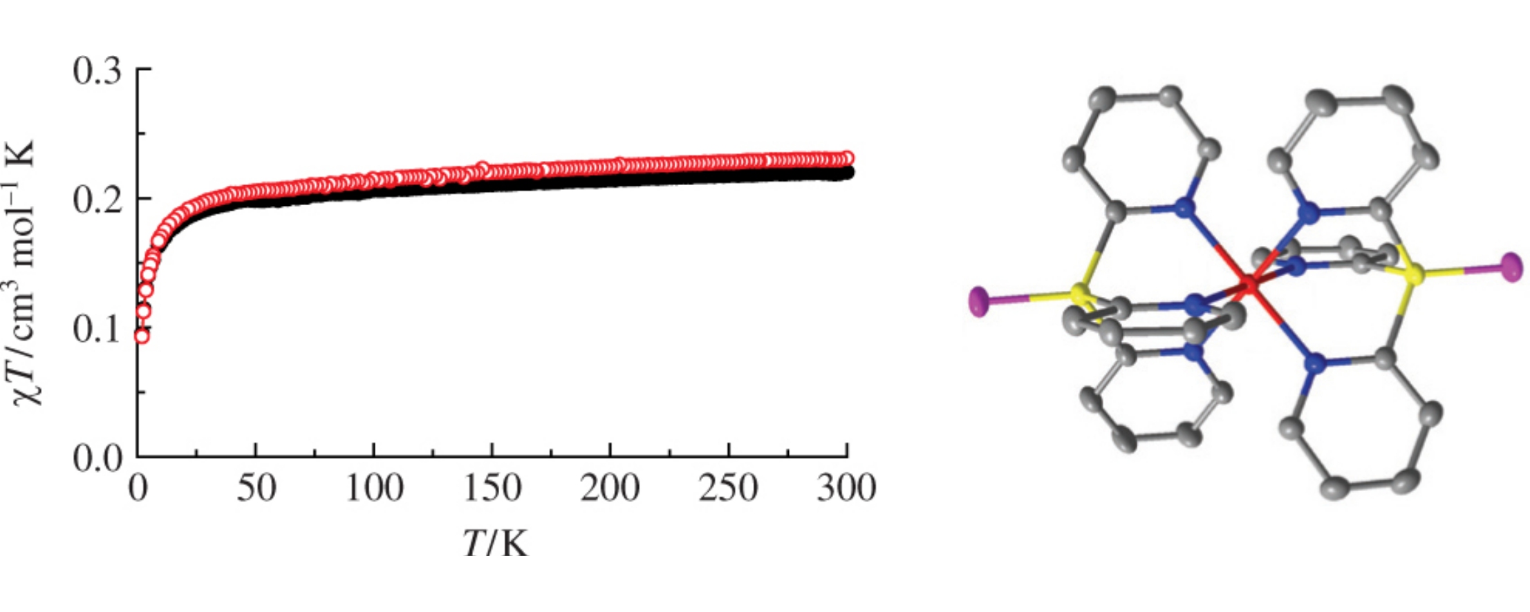 Two iron(ii) mononuclear metal complexes with tris(pyridyl)-phosphine sulfides and Fe(ClO4)2·6H2O have been synthesized and characterized. Detailed structural analyses and magnetic susceptibility measurements confirm no spin transition from low-spin to the high-spin state between 2 and 300 K in these complexes.
