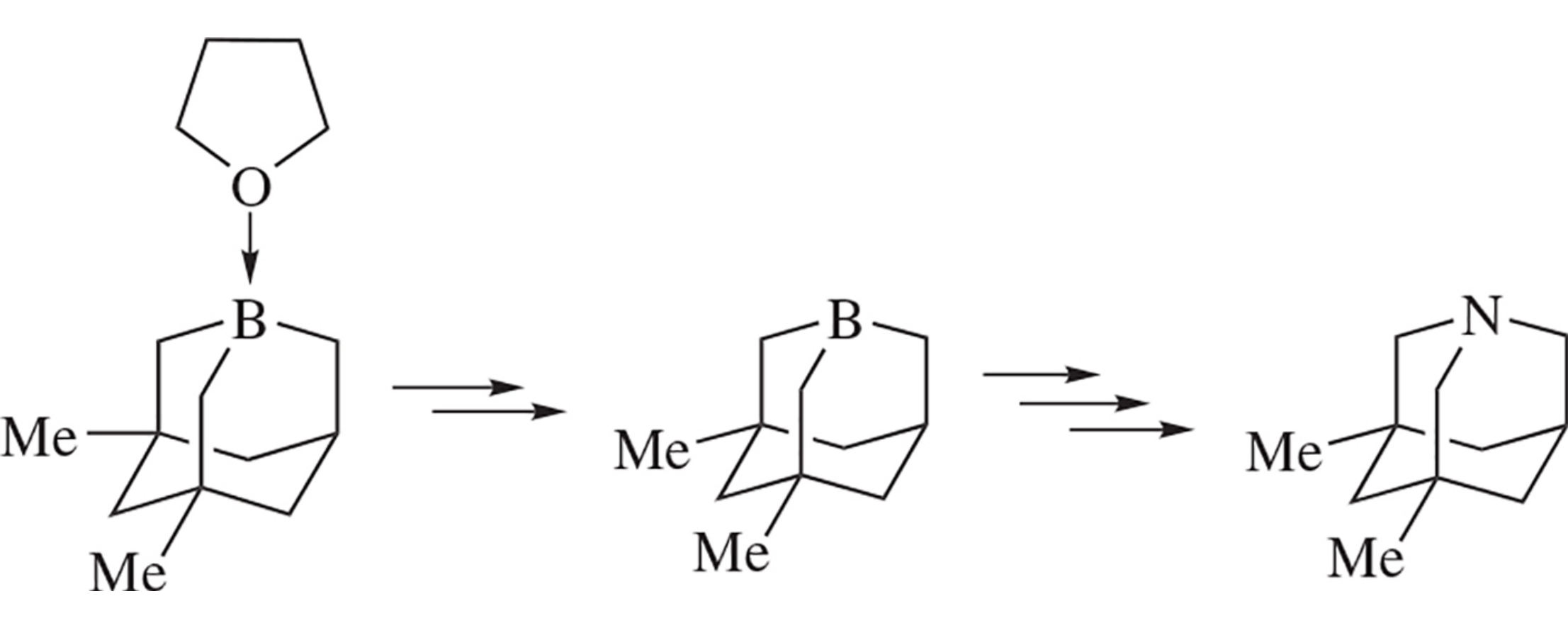 The first synthesis of 3,5-dimethyl-1-boraadamantane from its easily available tetrahydrofuran adduct comprised sequential treatment with BuLi, AcCl, (Cy2BH)2 and heating. The compound was converted into its electronic ‘antagonist’, namely, 3,5-dimethyl-1-azaadamantane.