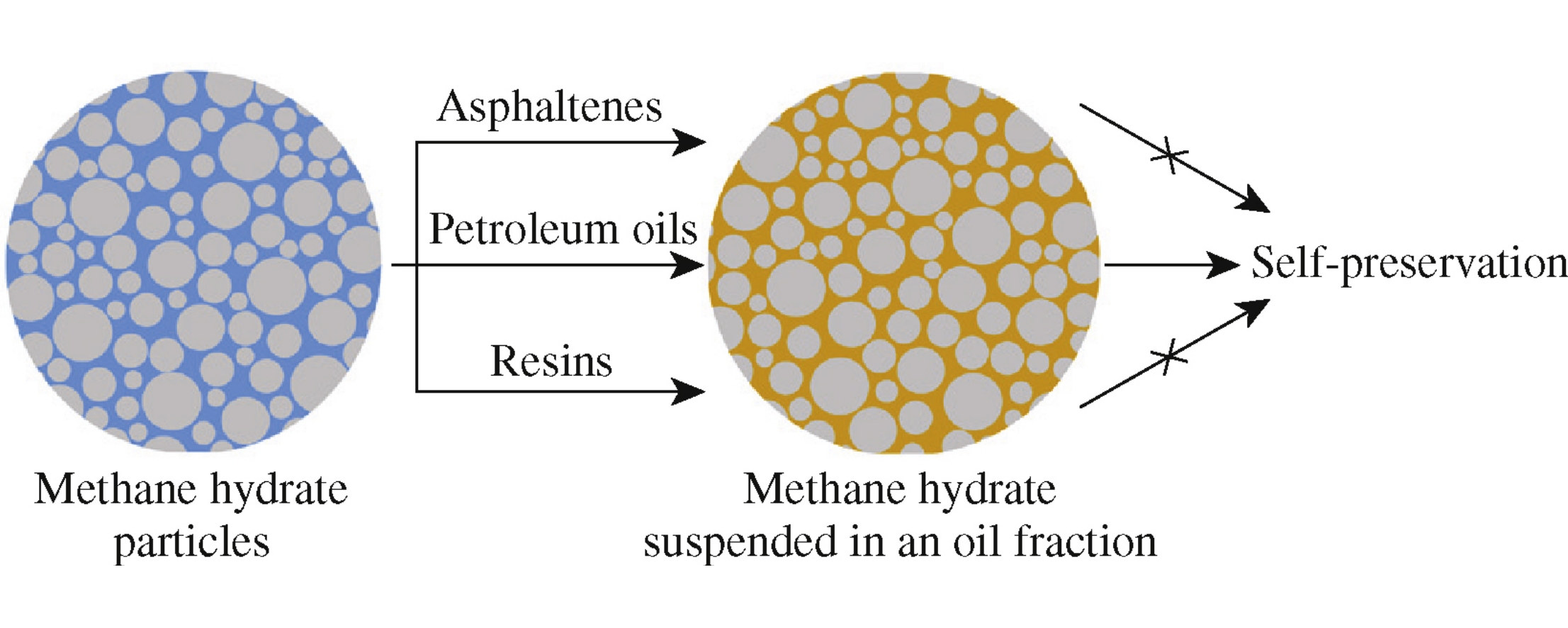 The dissociation of methane hydrate doped with a petroleum fraction (resins, asphaltenes, or oils) by its cryogenic mixing with pure hydrate particles has been studied at temperatures below 0°C. An oil fraction of petroleum (a mixture of saturated, aromatic and polar compounds) was close to crude oil in terms of efficiency with respect to the self-preservation of methane hydrate. The effect of asphaltenes on hydrate dissociation was negligible, whereas resinous substances occupied an intermediate position between the fractions of oils and asphaltenes in the degree of influence.