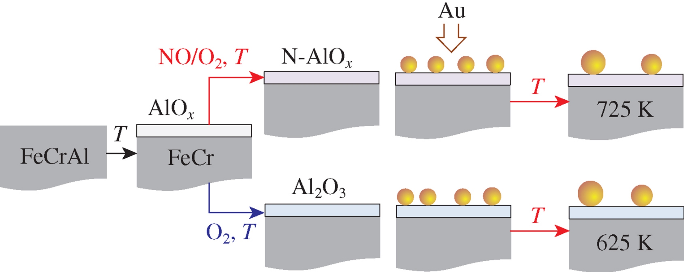 The procedure of alumina support modification by treatment with NO was developed and tested for the improvements in the resistance of supported metal particles against sintering. The stabilization effect caused by a formation of aluminum oxynitrides was clearly demonstrated for the model catalysts bearing supported gold.