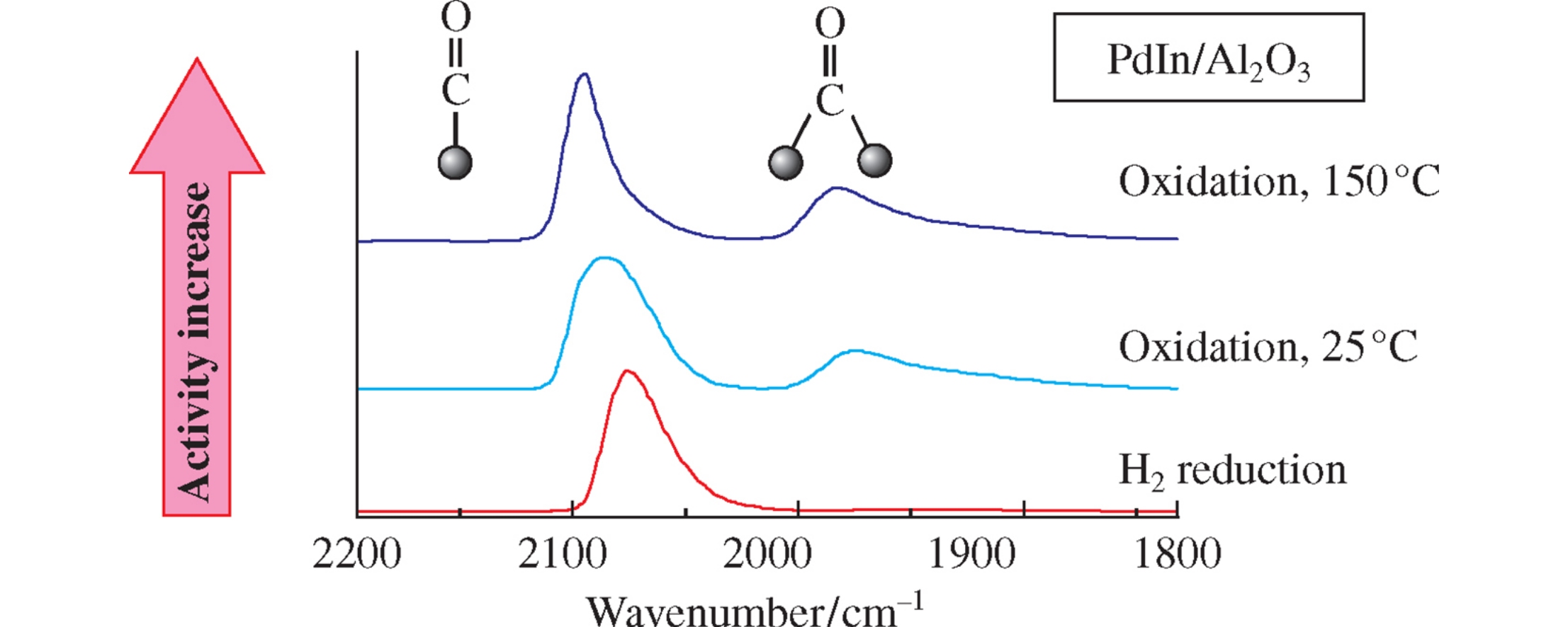 The in situ DRIFT-CO and XPS data demonstrated that the mild oxidation of PdIn intermetallic nanoparticles results in the partial oxidation of an In component and the trans-formation of isolated Pd1 sites to Pdn multiatomic ones thus enhancing PdIn activity in the liquid-phase hydrogenation of diphenylacetylene without sacrificing the alkene selectivity.