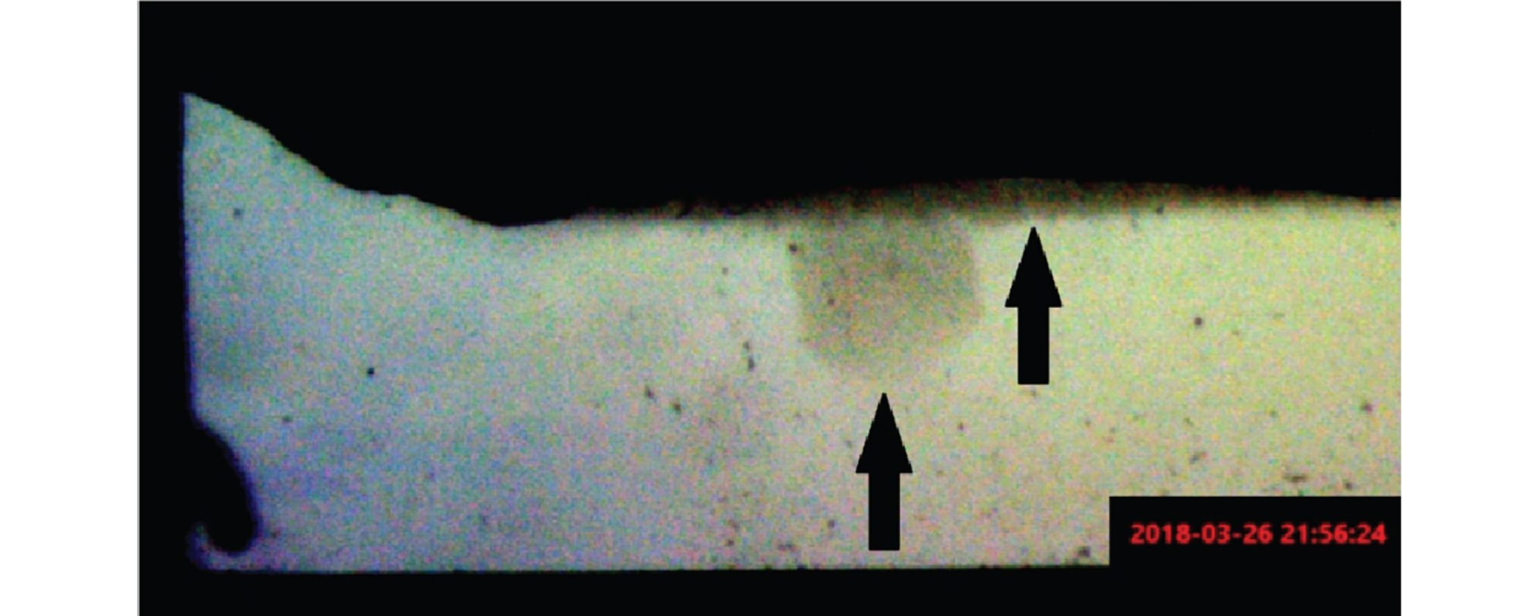 Visual investigation of the nucleation and growth of methane hydrate in a bilayer system of water and oil revealed hydrate nucleation to proceed not only on the water–oil contact surface but also beyond this boundary on the contact surface of water with glass.