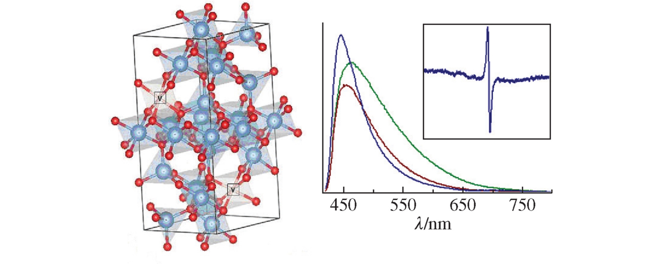 The photoluminescence properties of nanodimensional γ-Al2O3 produced by the thermolysis of aluminum hydroxoformate Al(OH)(HCOO)2 under different conditions have been studied. In the EPR spectrum of γ-Al2O3 prepared by thermohydrolysis, a low-field signal was detected, whose shape depends on the amount of sample. The data were interpreted assuming the existence of paramagnetic centers having no inversion center.