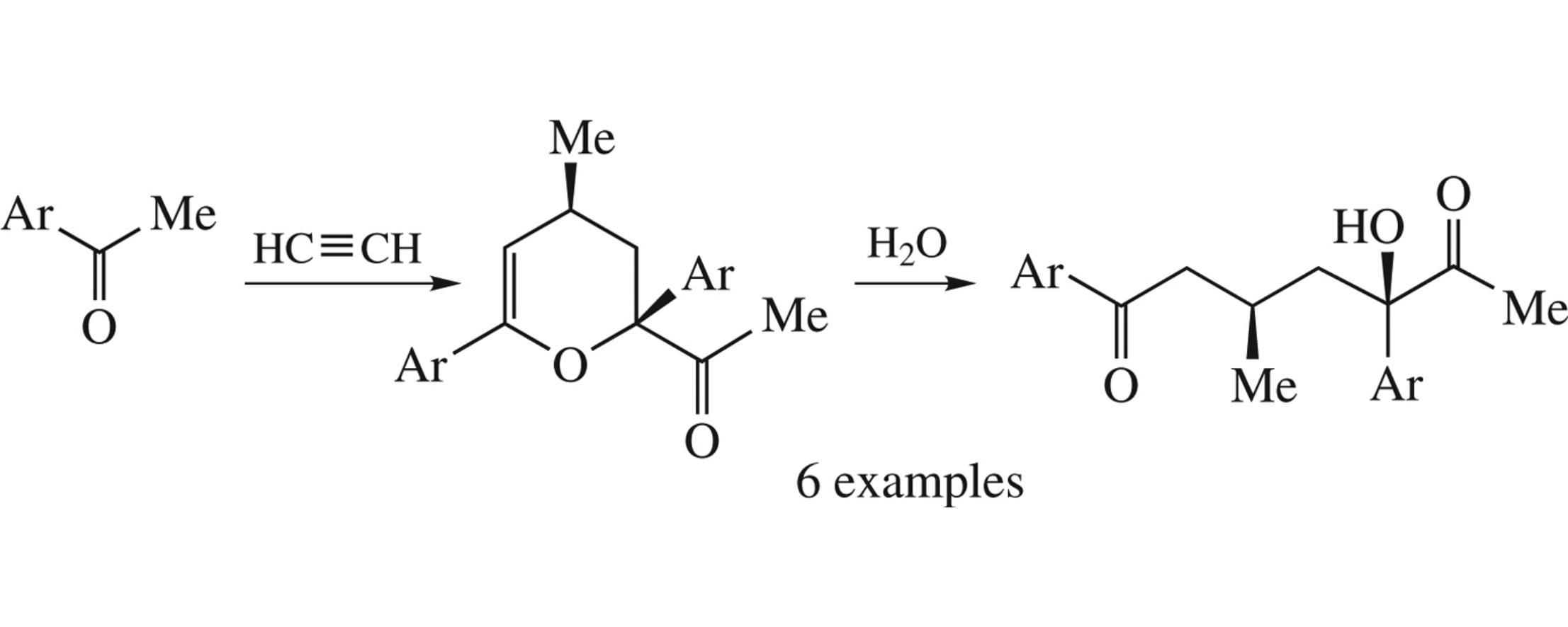 (2R*,4R*)-2-Acetyl-2,6-diaryl-4-methyl-3,4-dihydropyrans (diastereoselectively synthesized from acetylene and ketones in one synthetic operation) undergo ring opening by aqueous NH4Cl (MeCN, 80°C, 8h) to afford diastereomerically pure 5-hydroxy-1,6-diketones in 48–89% yields.