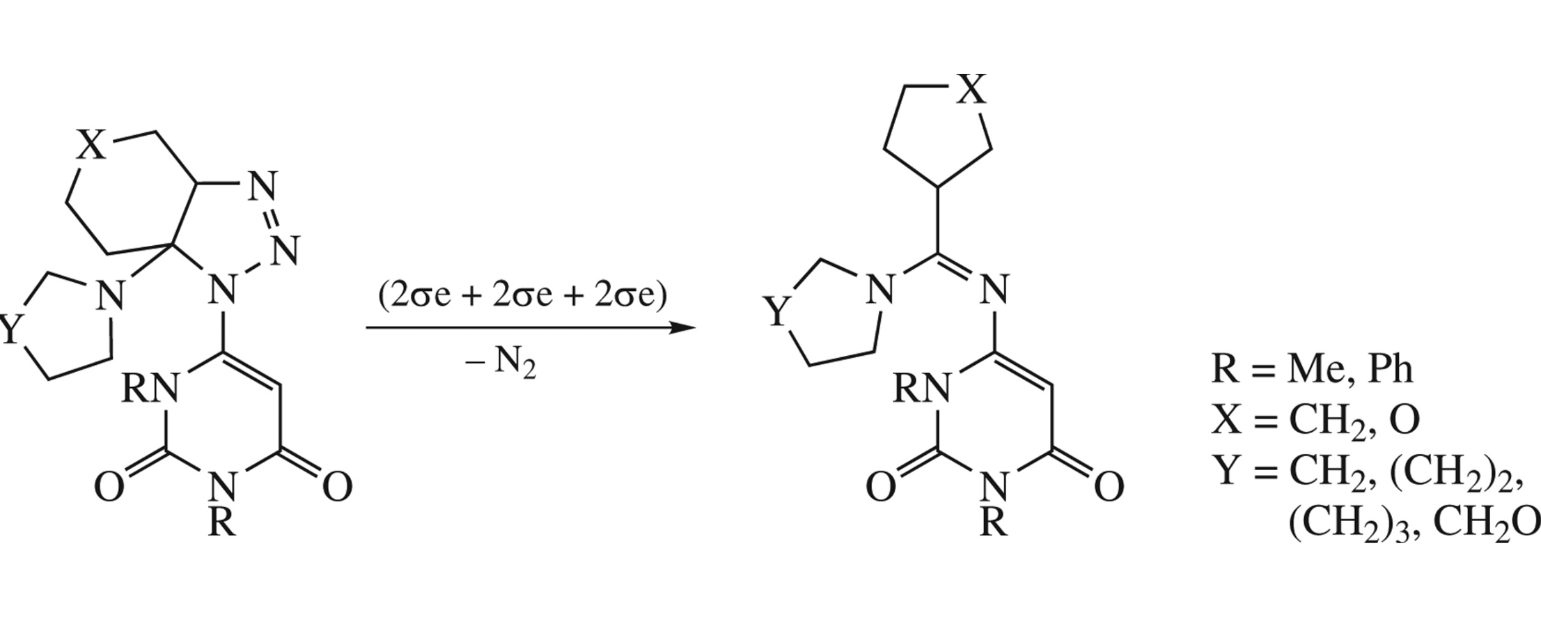 Novel N-pyrimidyl amidines of alycyclic acids were obtained in one step from of 4-azidopyrimidines and endocyclic enamines. The reaction mechanism involves [3 + 2]-addition of azide at the double bond followed by cleavage of thus formed 1,2,3-triazoline ring, and a contraction of alicycle.