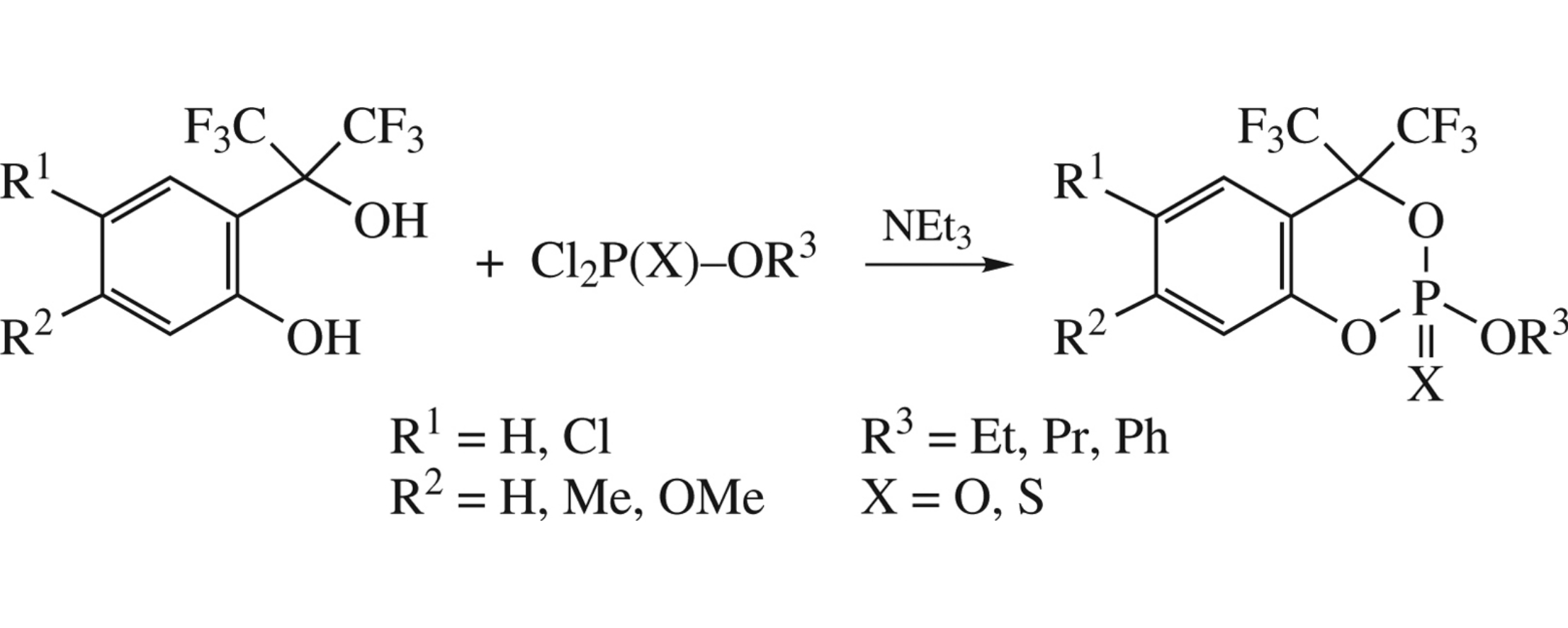 Substituted α,α-bis(trifluoromethyl)salicylic alcohols react with dichlorido(thio)phosphates in the presence of NEt3 to afford 2-alkoxy-4,4-bis(trifluoromethyl)-4H-1,3,2-benzodioxaphosphinine 2-oxide(sulfides) in high yields. The latter can be of interest as potential cholinesterase inhibitors.