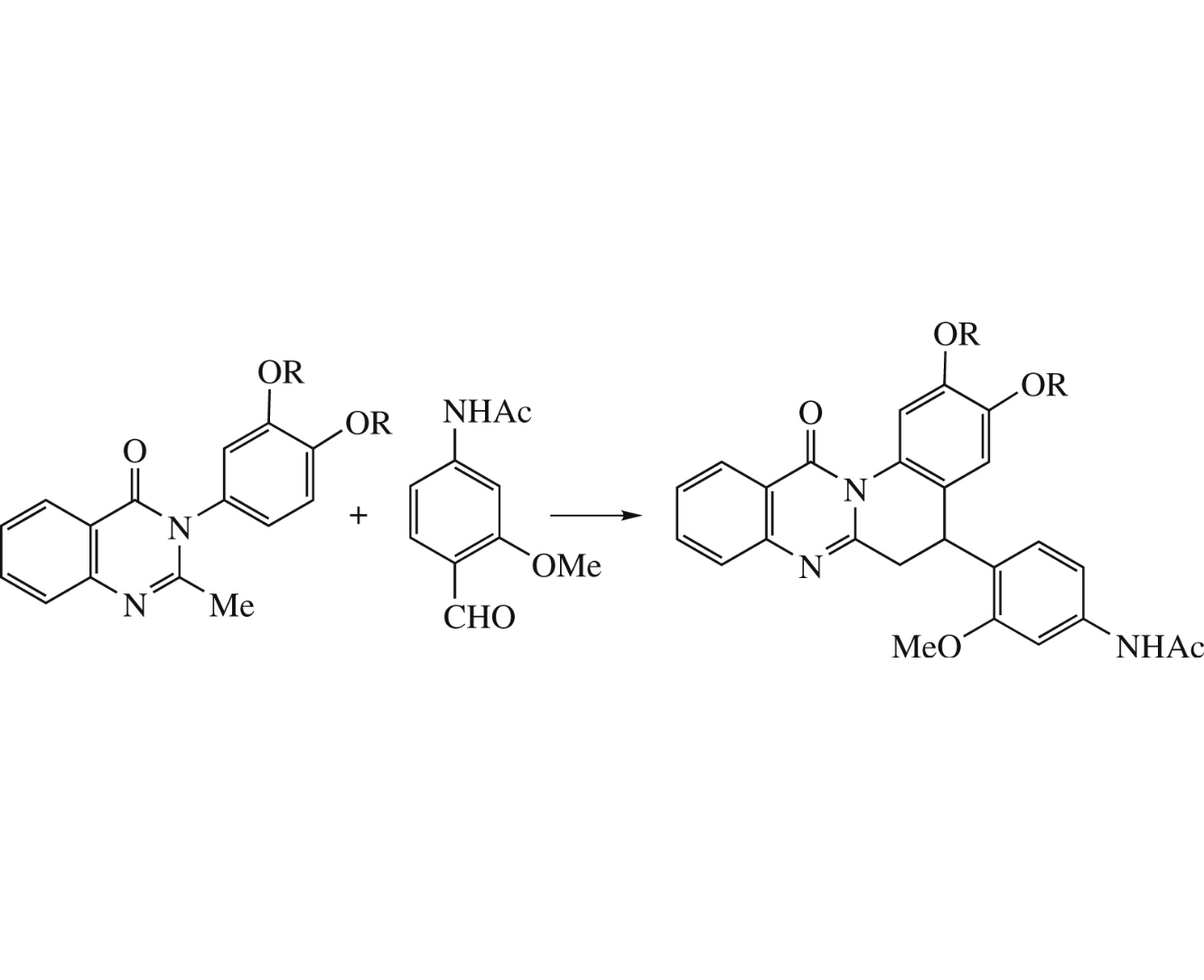 Novel tetracyclic 5-aryl-5,6-dihydroquinolino[2,1-b]quinazolin-12-ones bearing benzo-15-crown-5 ether and dimethoxyphenyl moieties were prepared by one-pot cascade synthesis involving the thermally allowed pericyclic transformations of (E)-2-(2-methoxystyryl)quinazolinones. The pseudocyclic transition state of six-electron electrocyclization has been located and the activation barrier has been estimated by RHF/3-21G and 6-311G* calculation methods. The crystal structure of N-[4-(2,3-dimethoxy-12-oxo-5,6-dihydroquinolino[2,1-b]quinazolin-5-yl)-3-methoxyphenyl]acetamide was determined by X-ray diffraction analysis.