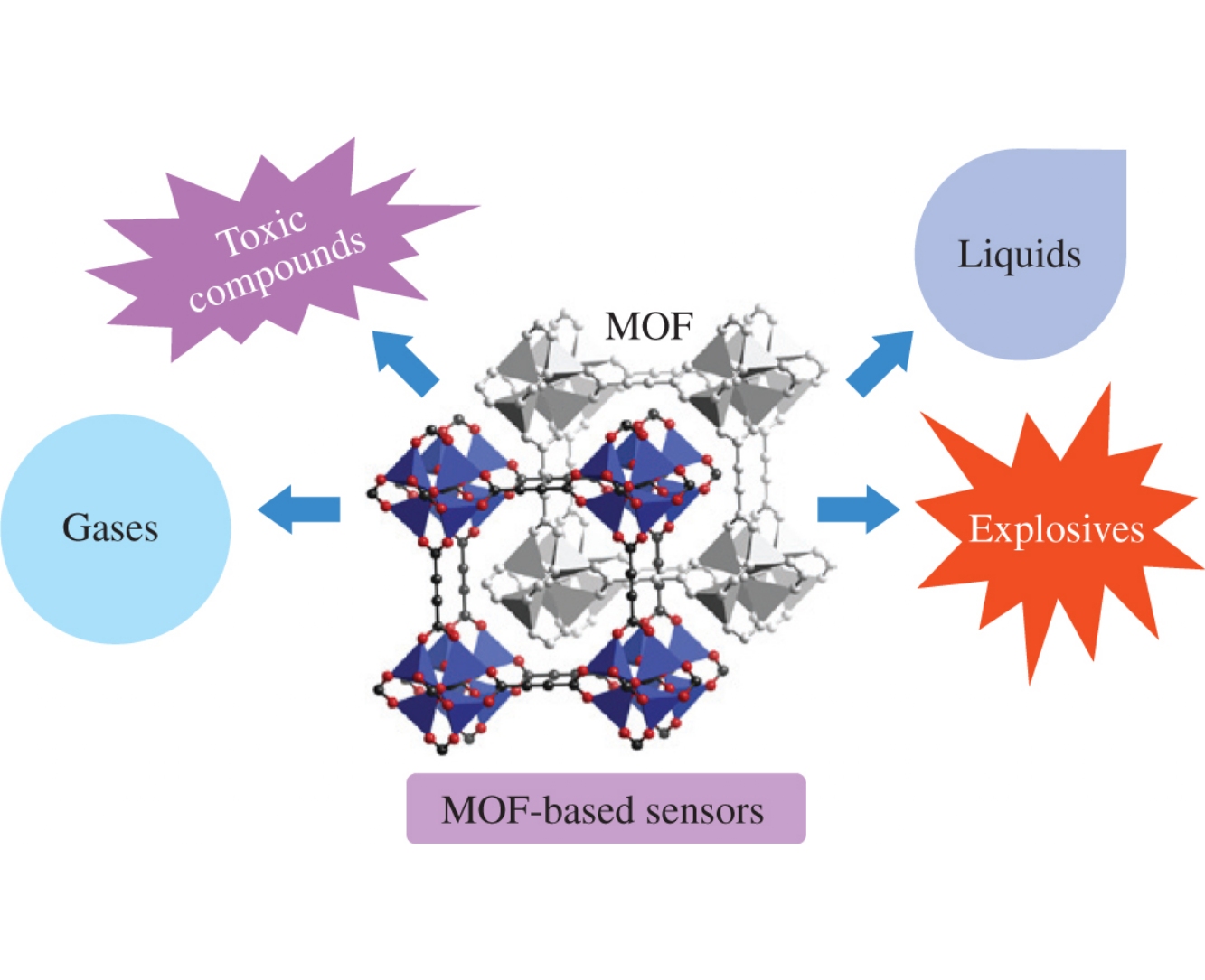 The present review covers applications of metal organic frame-works (MOFs) in sensors. Particular attention is paid to gas sensors, since MOFs have demonstrated a good selectivity towards the adsorption of gas molecules. The applications of MOFs as pre-concentrators of the compounds to be analyzed are also outlined. Two modes of operation can be used in the considered sensors: photoluminescent and electrochemical ones.