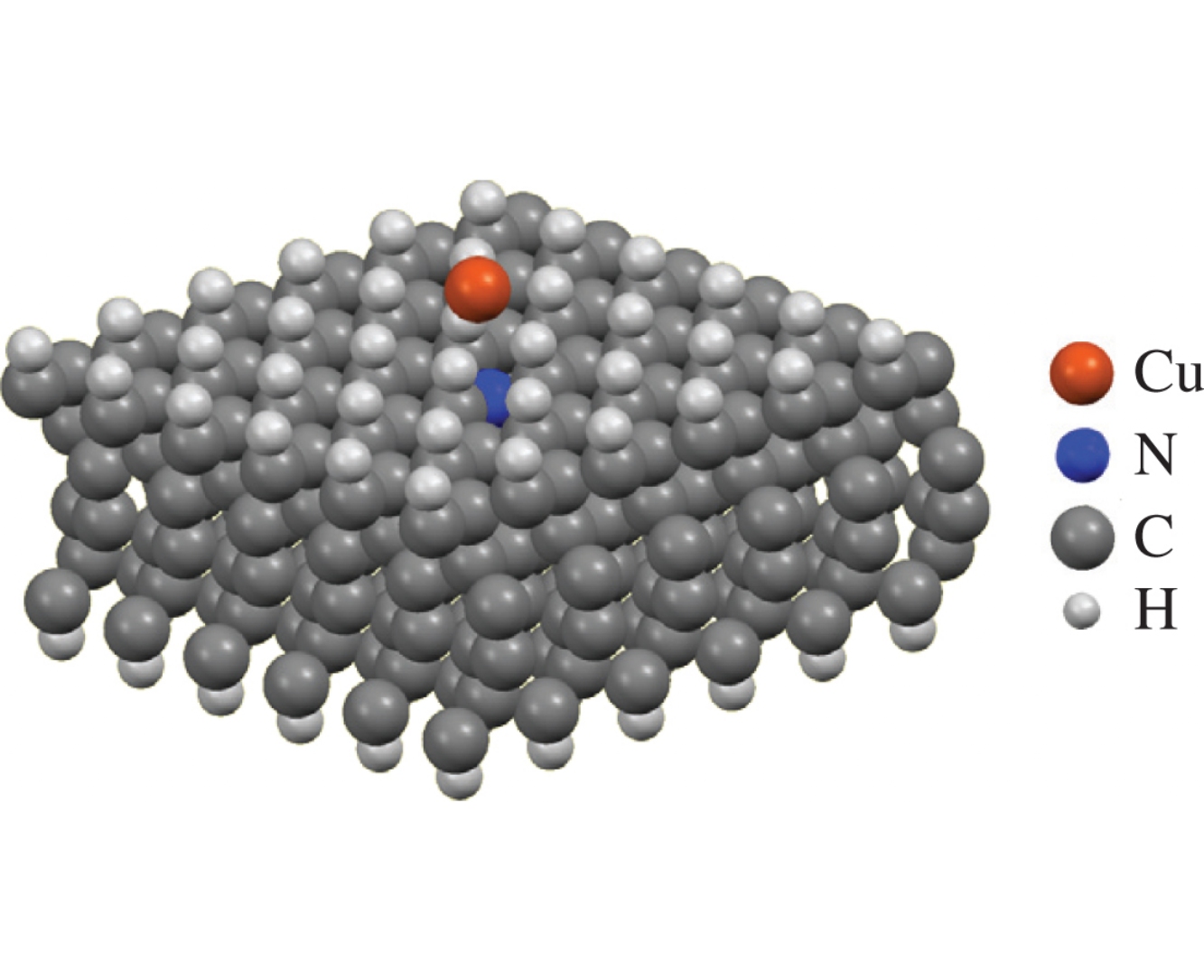 We demonstrate that isolated copper atoms can be bound to the four-coordinated surface nitrogen sites of a diamond lattice fully terminated by atomic hydrogen. This bonding is related to the ability of surface nitrogen sites to donate unpaired electrons (from an antibonding orbital) to third alien surface agents.