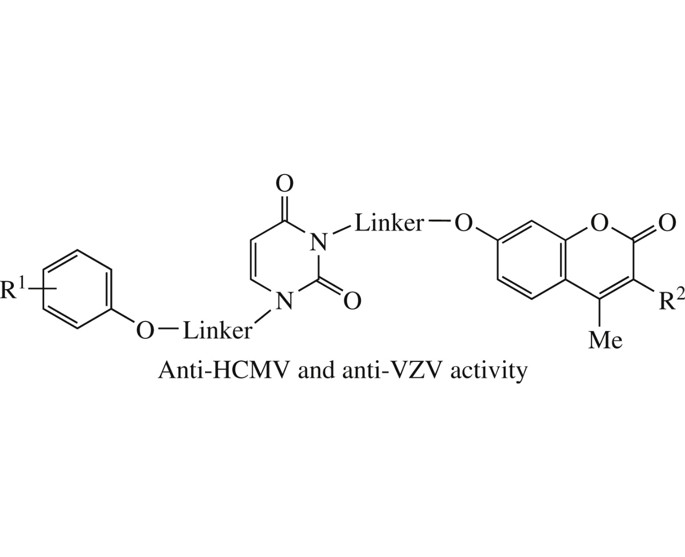 A series of 1-[(bromophenoxy)alkyl]uracil–coumarin conjugates has been obtained through the preparation of starting 1-[(bromophenoxy)alkyl]uracil derivatives, followed by their treatment with 7-(ω-bromoalkoxy)-4-methyl-2H-chromen-2-ones. Two of the synthesized uracil–coumarin conjugates demonstrated a pronounced inhibitory activity against HCMV and VZV replication in vitro.