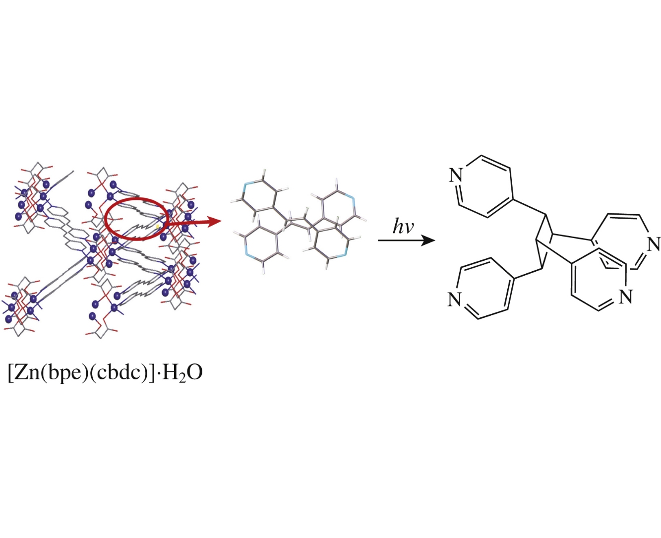 Synthesis and response towards heating and UV irradiation of two novel zinc(II) cyclobutane-1,1′-dicarboxylate complexes were examined using X-ray diffraction, FT-IR and 1H NMR spectroscopy. One of the complexes underwent a photoinitiated solid state transformation of 1,2-bis(pyrid-4-yl)ethylene into 1,2,3,4-tetrakis(pyrid-4-yl)cyclobutane. A preliminary dehydration of this solid decreases the conversion rate of photoreaction.