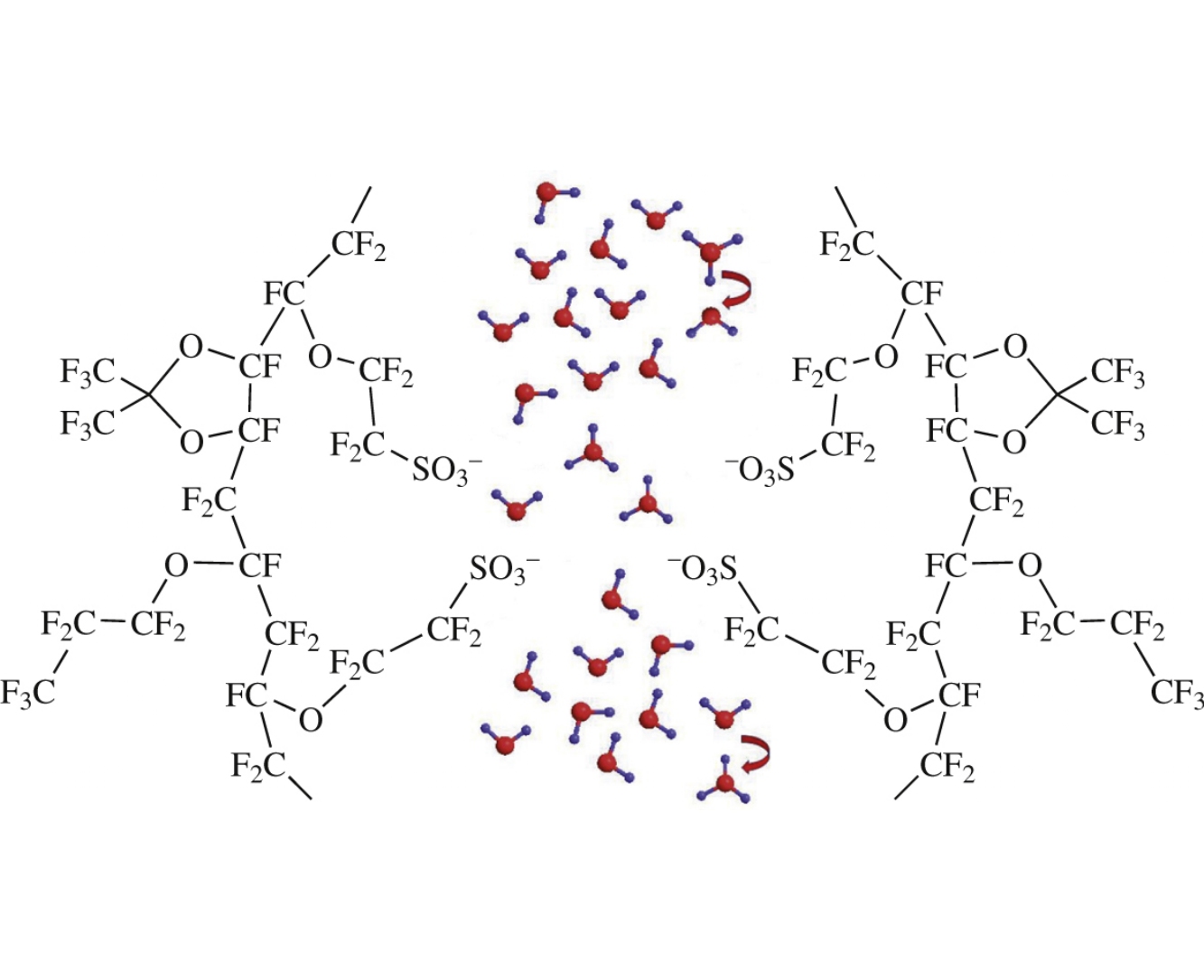 A new perfluorinated sulfocationic polymer and a membrane based thereon have been produced using the thermally initiated high-pressure polymerization. The proton conductivity of obtained material is higher than that of commercial Nafion membranes and reaches 57mScm−1 at 21C and 114mScm−1 at 79 C.