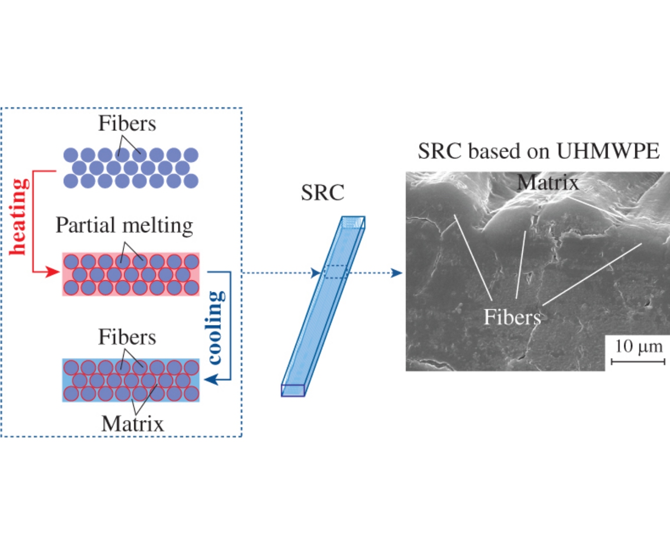 The self-reinforced composites based on ultra-high molecular weight polyethylene (UHMWPE) fibers and isotropic UHMWPE were comparatively analyzed. The composites were produced using a compression molding, which resulted in only partial surface melting of the fibers and promoted a good interfacial adhesion, while the fiber core remained highly oriented. It was demonstrated that the formation of such structure led to significantly higher performance properties of the composites as compared to those of the isotropic polyethylene.