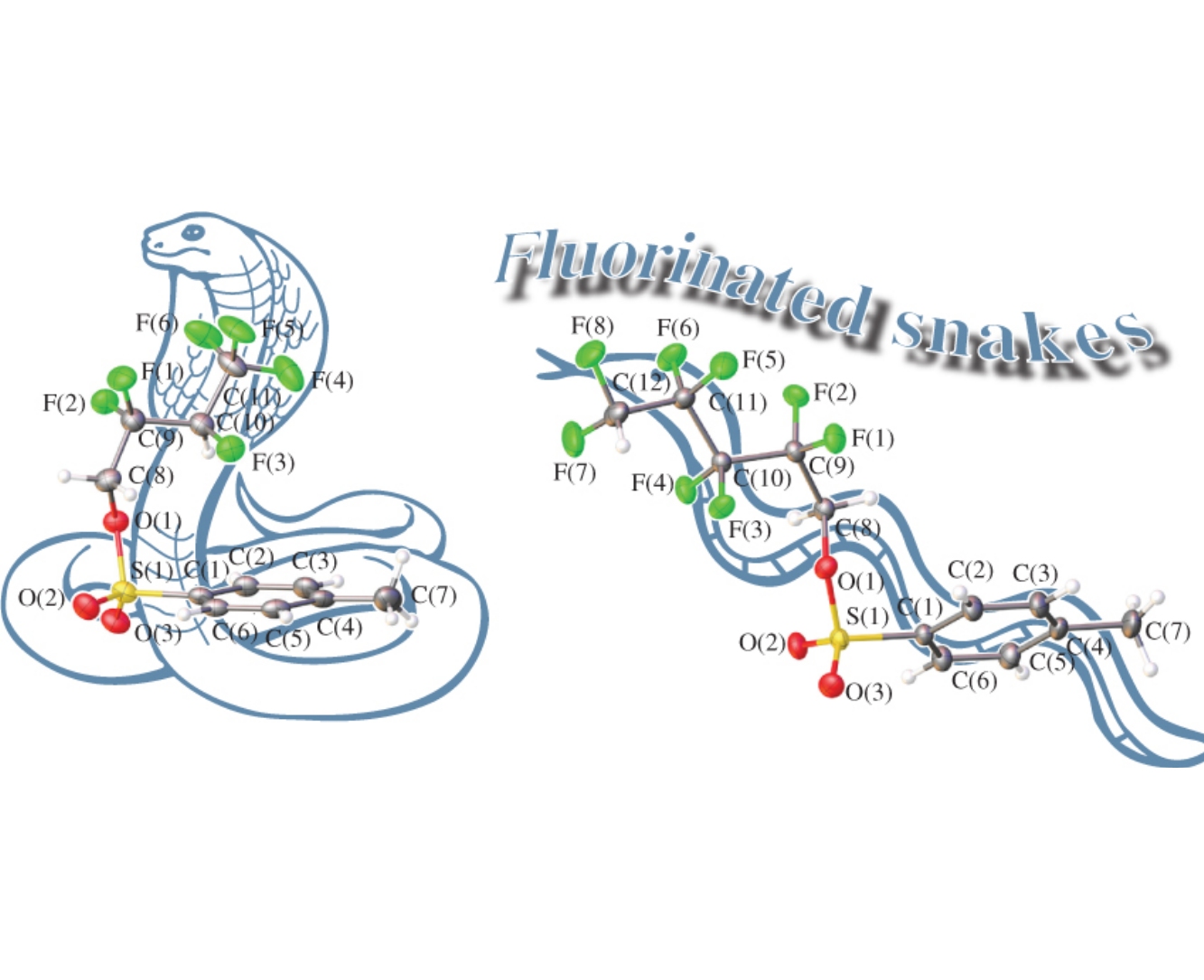 Crystal structures of fluorinated alkyl tosylates TsOCH2CF2CHFCF3 and TsOCH2(CF2)3CHF2 have been characterized by X-ray diffraction and quantum chemical calculations. The calculations have revealed the stabilization of head-to-tail conformation for TsOCH2CHFCF2CF3 due to intramolecular F・・・p and C–H・・・π interactions. Alternatively, for TsOCH2(CF2)3CHF2 these interactions cannot be responsible for the stabilization of head-to-tail conformation, thus the linear conformation is proved to be more stable.