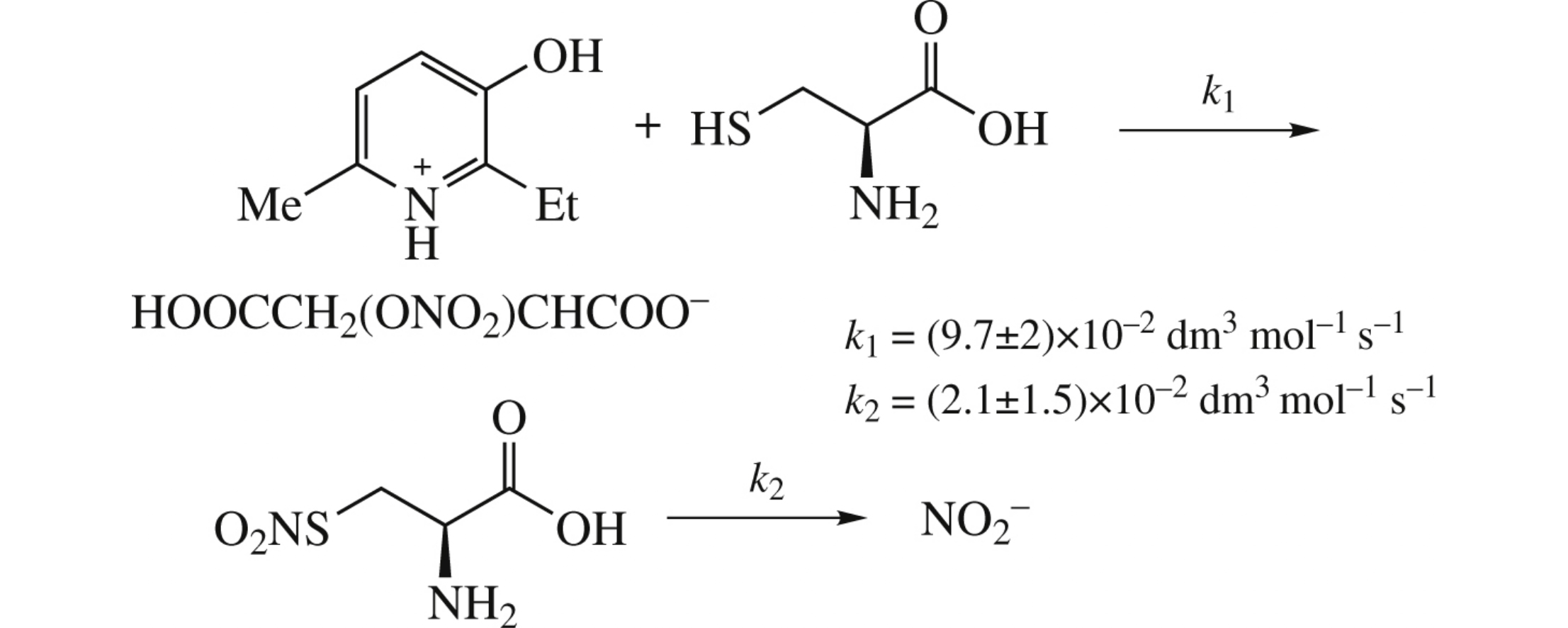 The nitrite-generating activity of 2-ethyl-3-hydroxy-6-methylpyridinium 2-nitroxysuccinate as a promising NO-donor has been investigated in reactions with various reducing agents. Reduction of the NO-donor with cysteine was analyzed using a kinetic modeling method. The calculated rate constants satisfactorily describe the experimental data, thereby confirming the proposed reaction mechanism.
