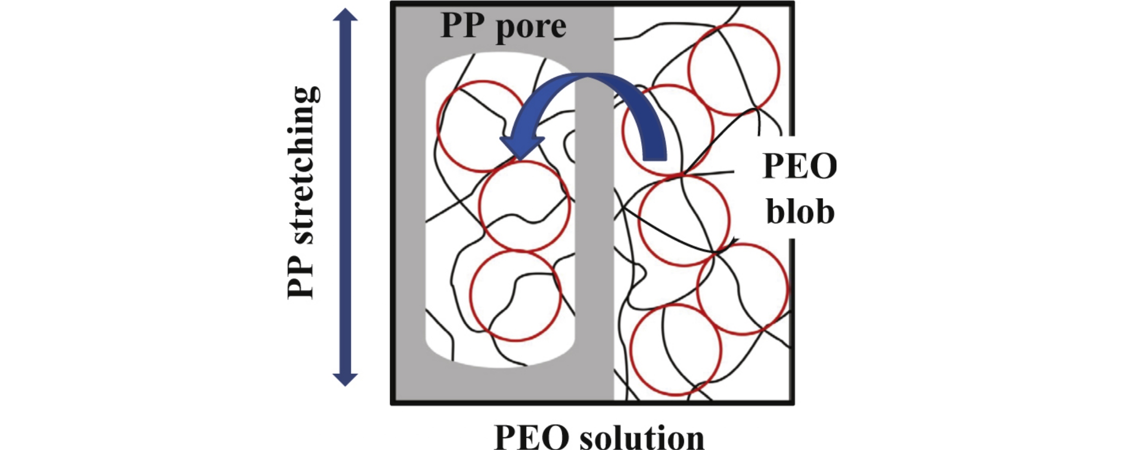 Nanocomposite materials based on the incompatible polymers polypropylene and poly(ethylene oxide) were prepared. The stretching of polypropylene films in water–ethanol solutions of poly(ethylene oxide) proceeds via intercrystallite crazing, and it is accompanied by the penetration of poly(ethylene oxide) macromolecules into the porous structure of a polypropylene matrix. The incorporation of a hydrophilic component provides an efficient hydrophilization of the initial hydrophobic polypropylene films.